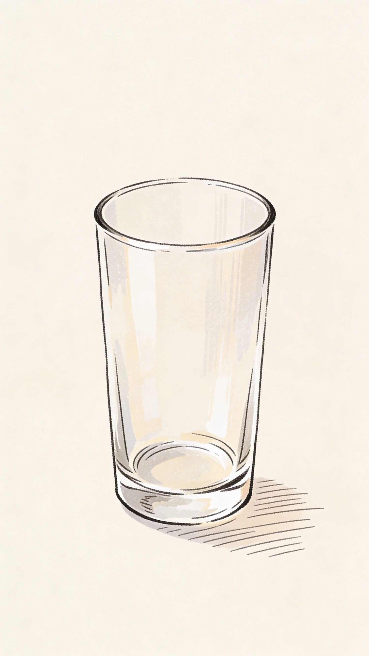 A clean illustration of a clear glass tumbler with subtle shading and a plain background, emphasizing its transparency and simplicity.