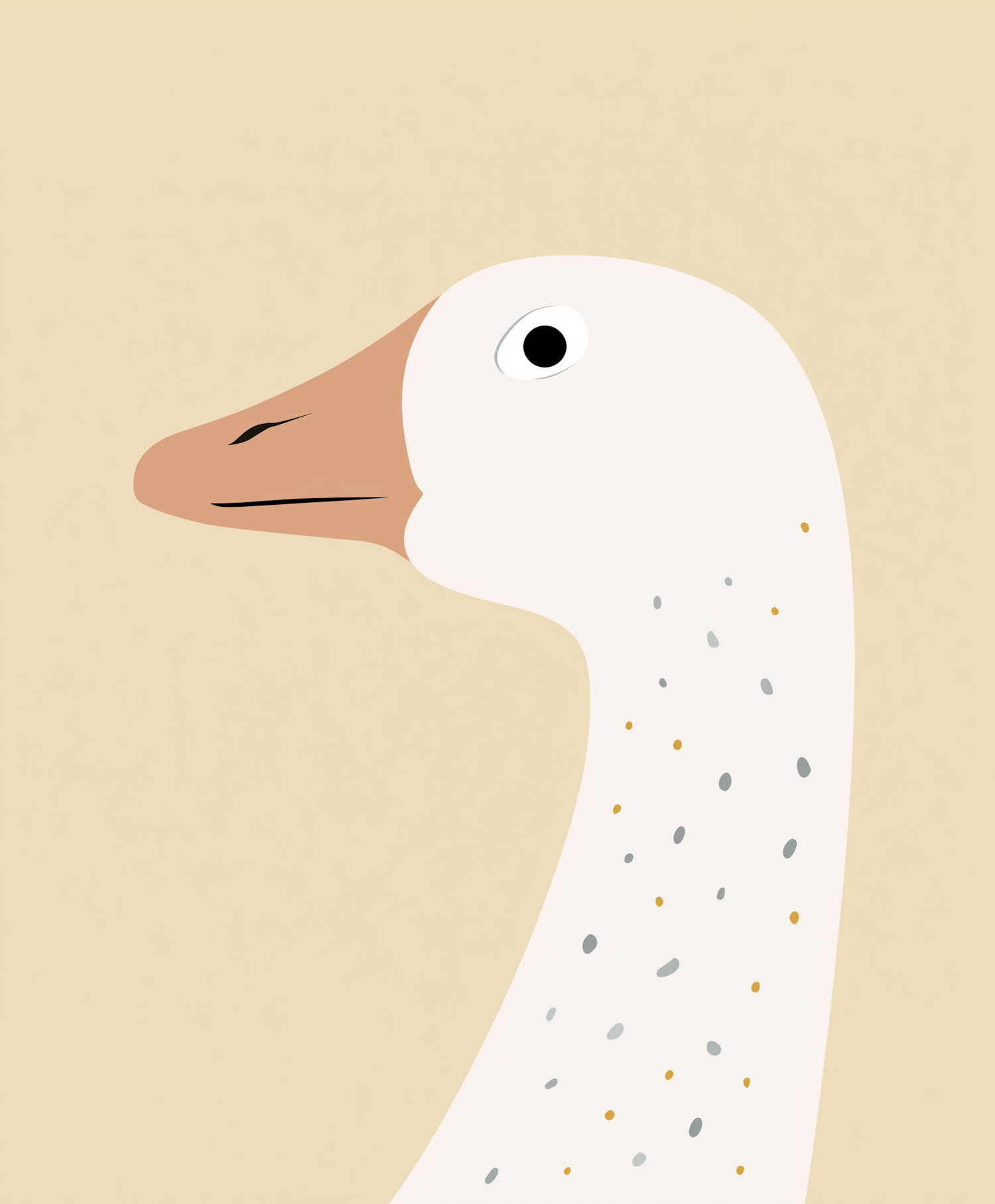 Minimalist illustration of a goose's head and neck with clean lines and muted tones, perfect for modern decor or educational material.