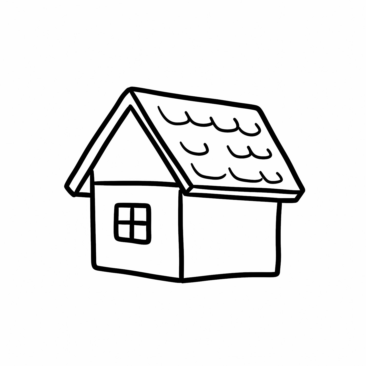 A minimalistic black-and-white line drawing of a small house with a pitched roof and a single window.