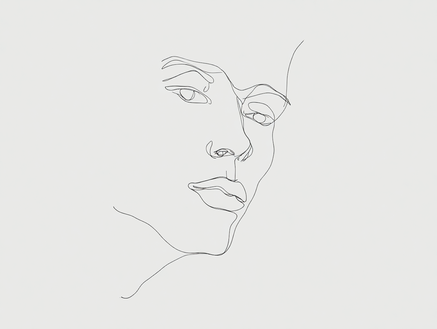 Minimalist line art of a human face using delicate, continuous strokes on a plain backdrop, emphasizing form and subtle detail.
