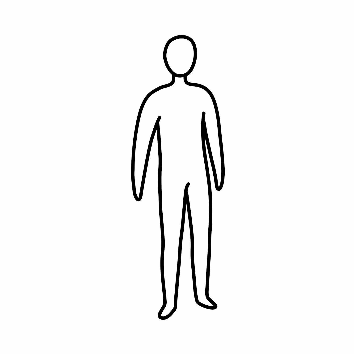 Minimalistic black-and-white line drawing of a standing human figure on a plain white background.