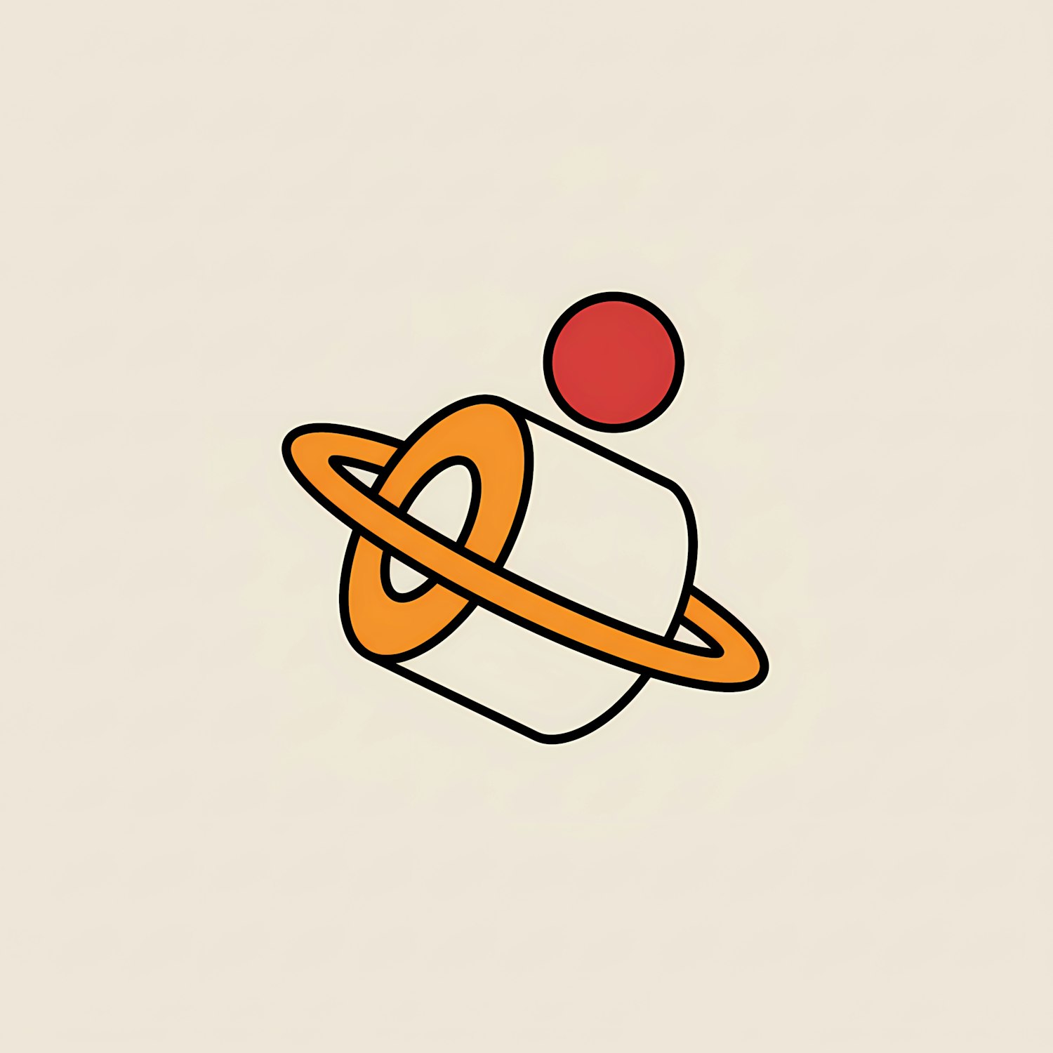 Minimalist design of a red circle, white cylinder, and orange ring on a beige background, creating a modern and abstract composition.