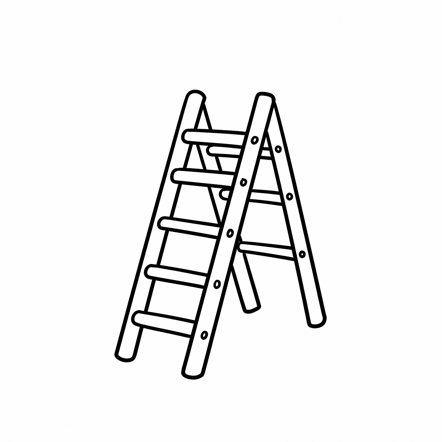 Minimalistic black-and-white line drawing of a step ladder, showcasing its structure and steps in a clean, simple style.