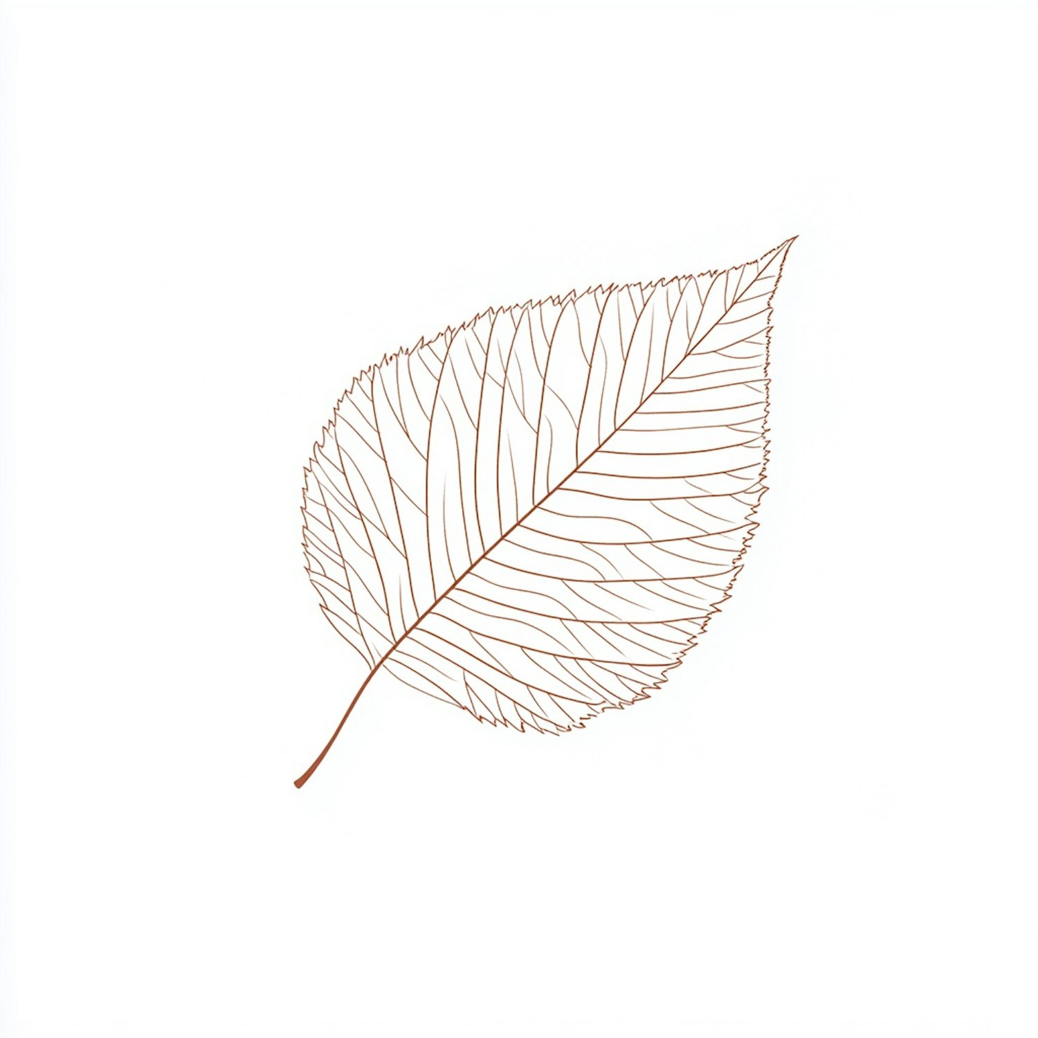 Minimalist illustration of a single leaf with detailed veins on a white background, perfect for nature-inspired designs.