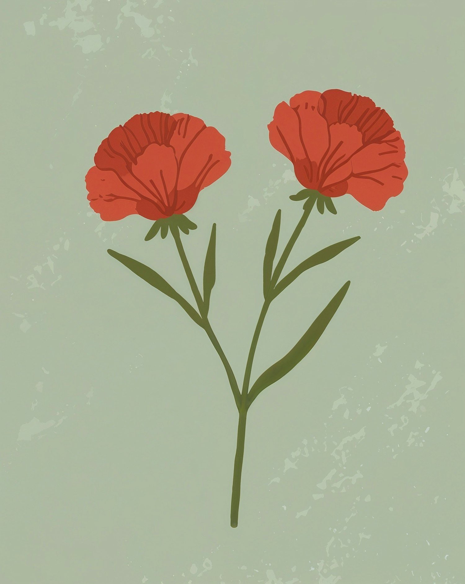 Minimalist illustration of two red flowers with green stems on a textured green background. Perfect for nature-inspired designs.