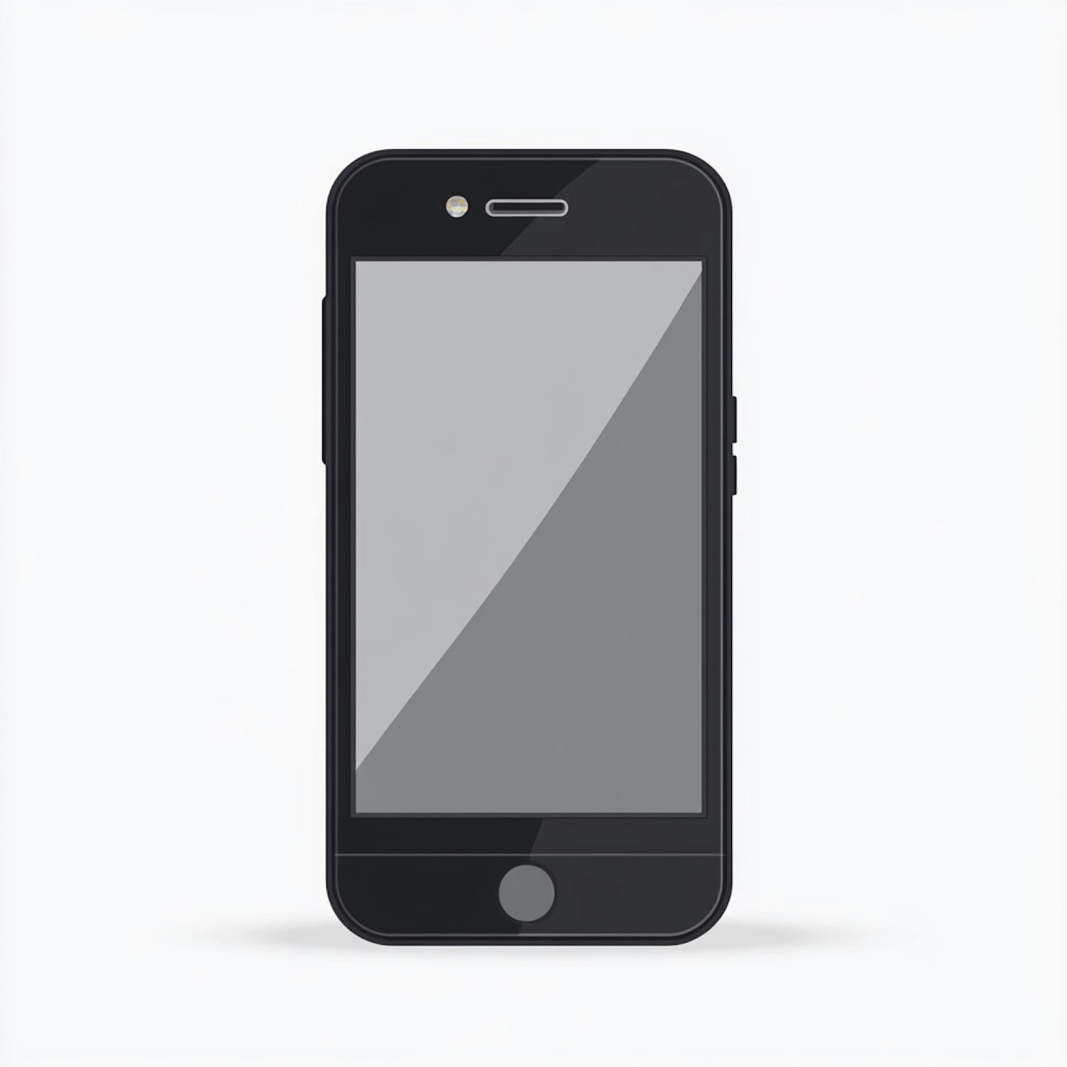 Minimalistic black smartphone illustration with a sleek design, rounded edges, and a blank screen on a plain white background.