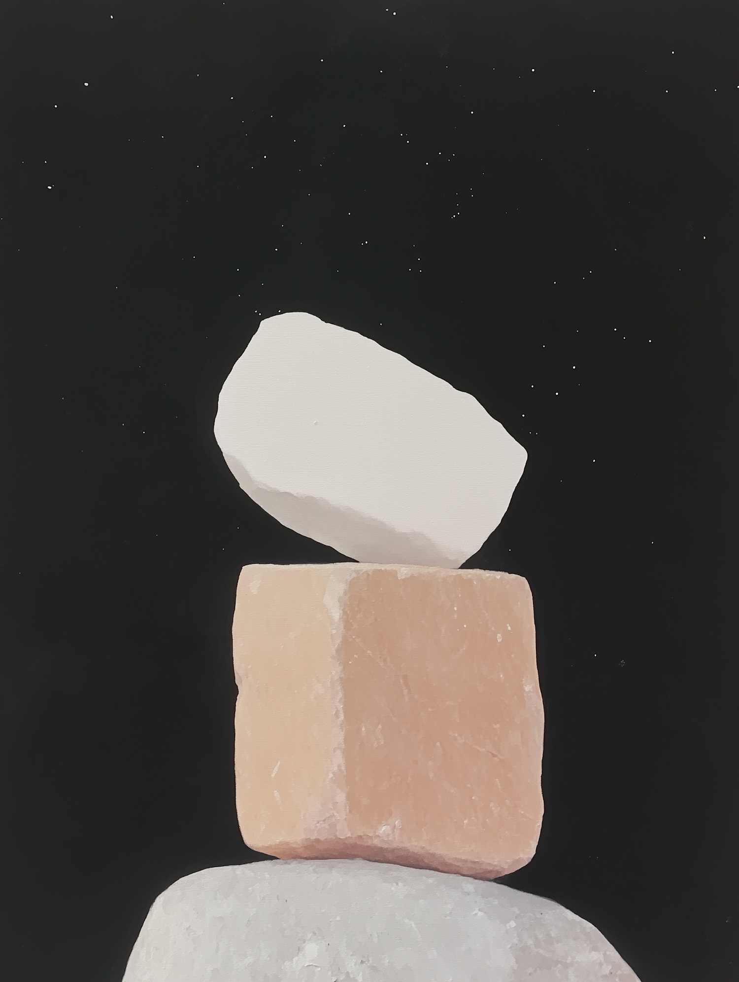 Minimalist illustration of stacked stones against a starry night sky, highlighting balance and simplicity.