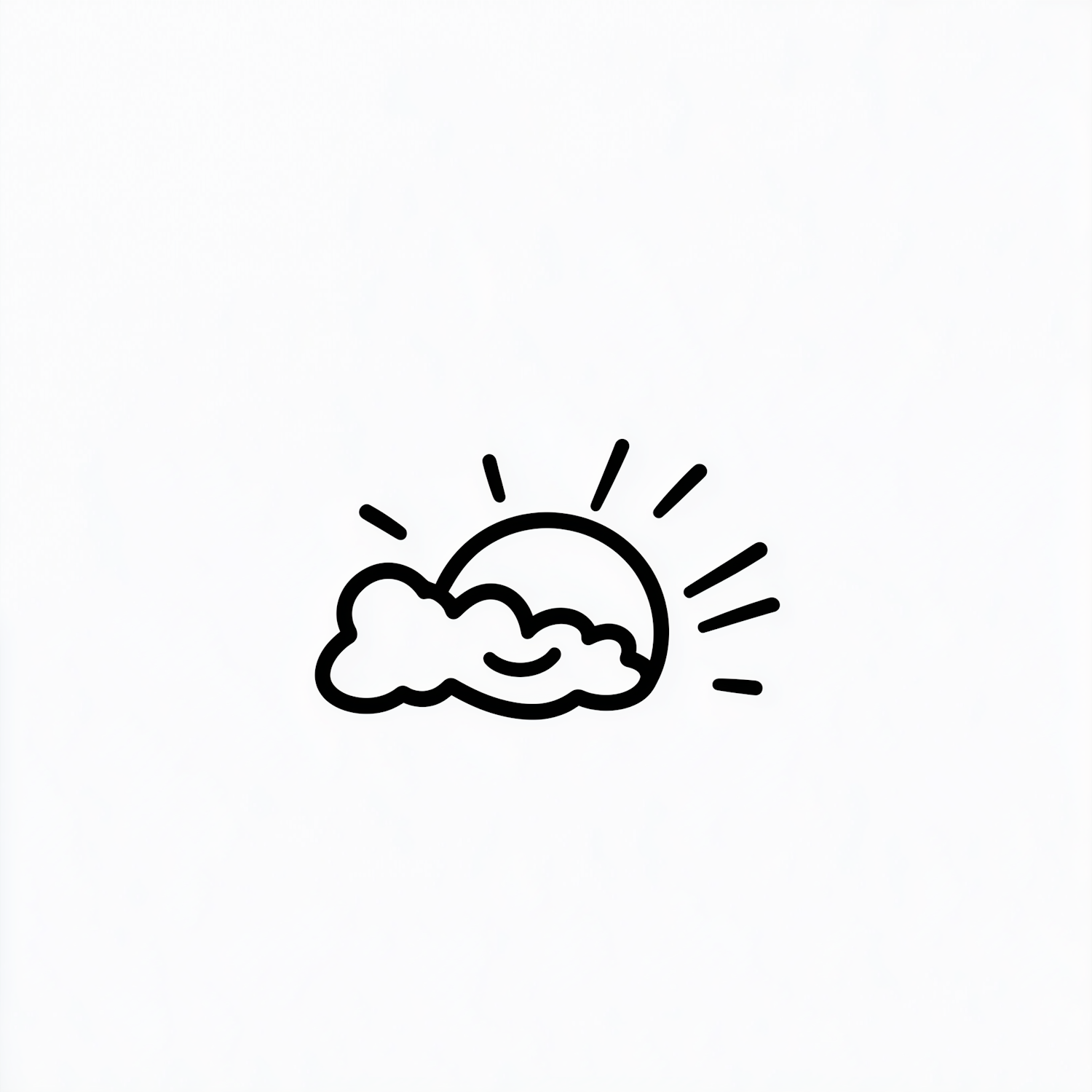 Minimalist black-and-white illustration of a sun partially behind a cloud, perfect for weather icons or simple graphic designs.