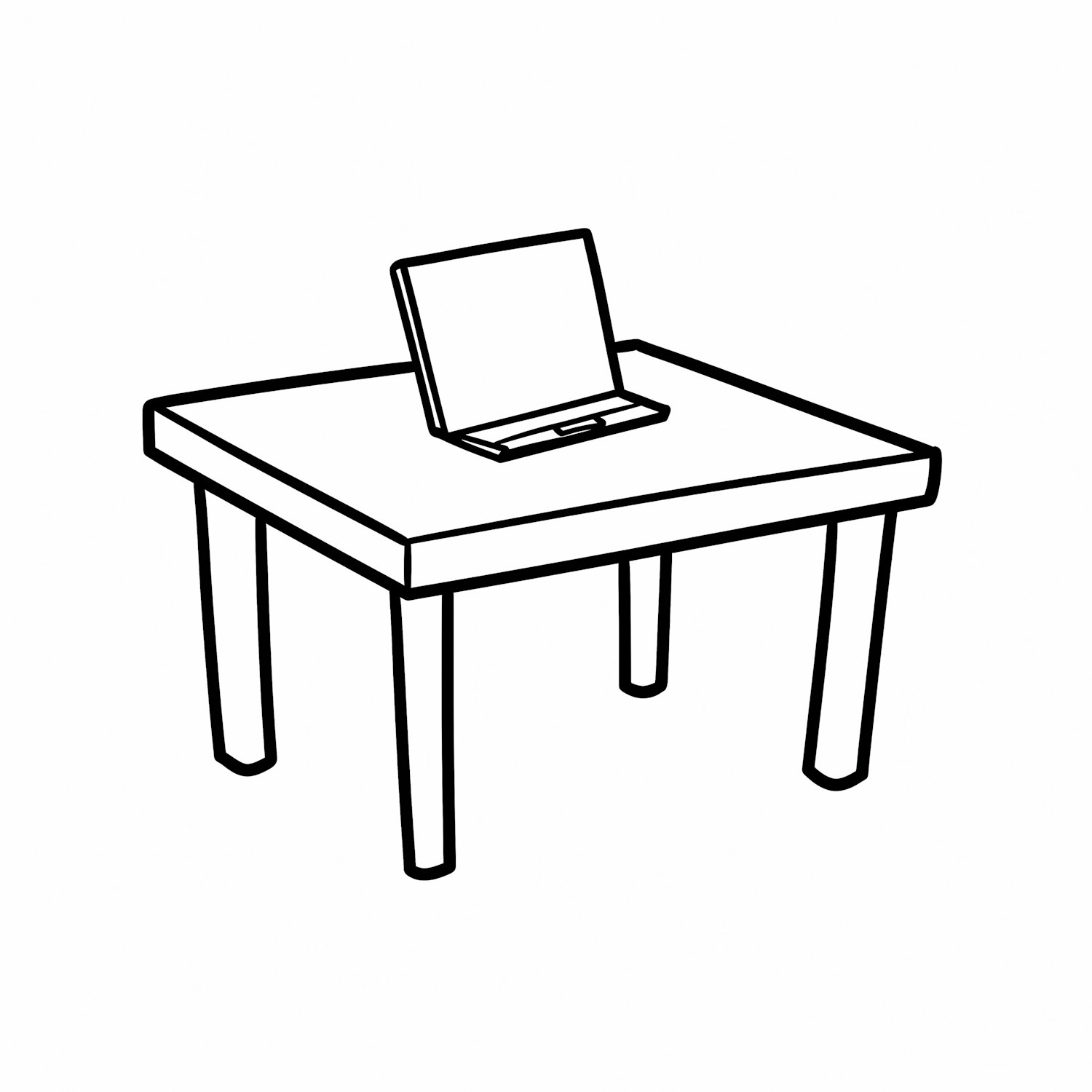 Minimalist black-and-white line art of a table with a laptop on it, showcasing clean and simple design elements.