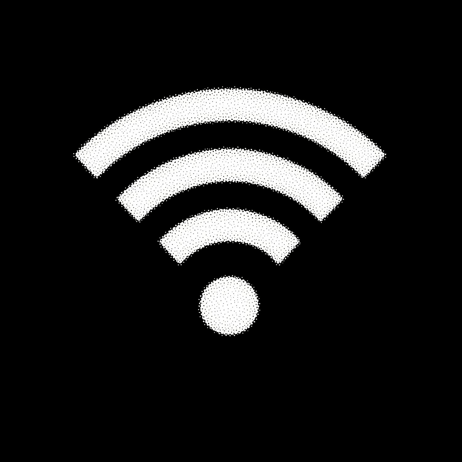 Minimalist Wi-Fi signal icon in white on a black background, symbolizing wireless connectivity with a clean and modern design.