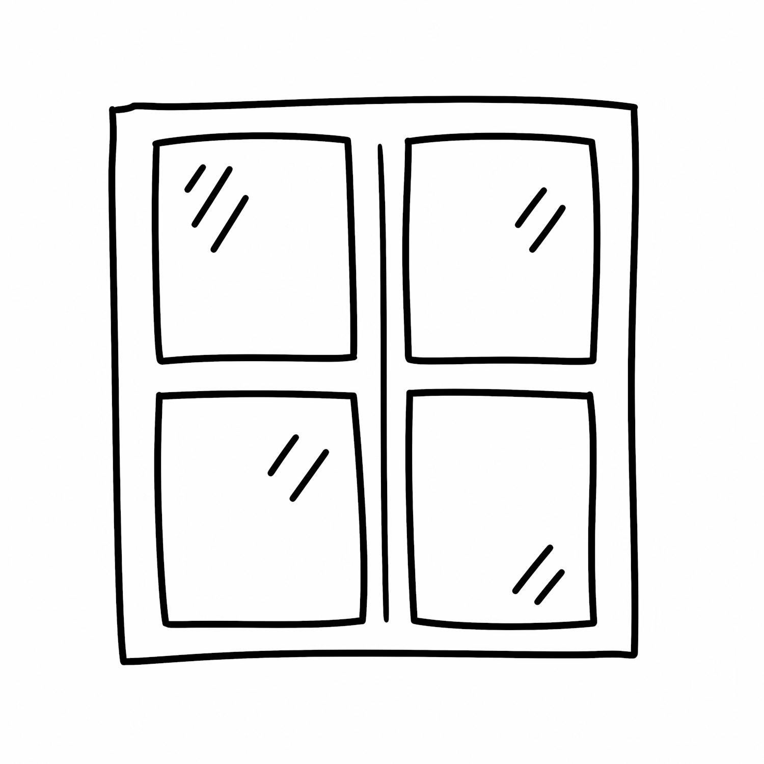 Minimalistic black-and-white line drawing of a four-pane window with clean lines and reflective details.