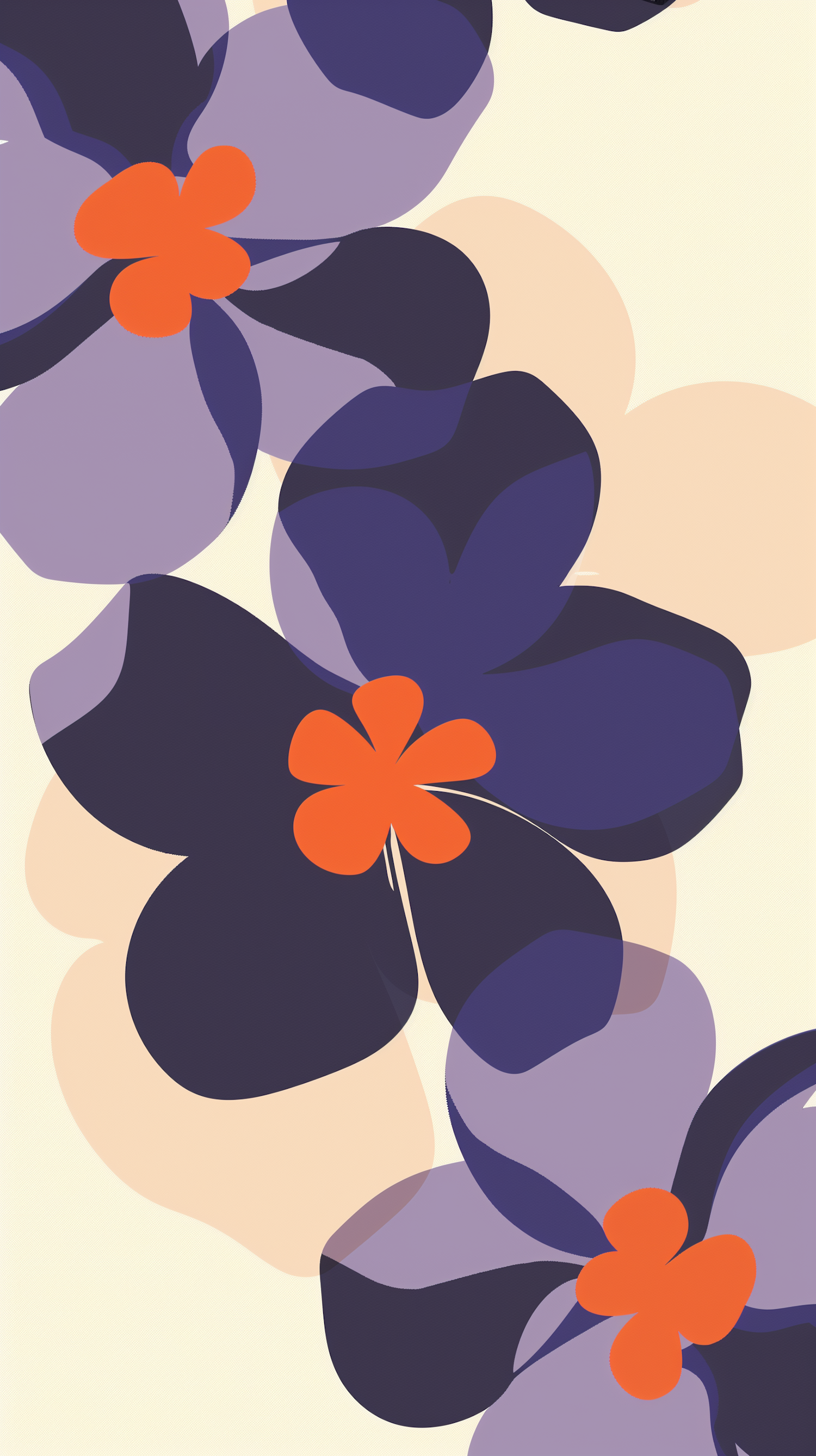 Bold floral illustration with purple petals and bright orange centers on a soft beige background. Perfect for modern decor or design projects.