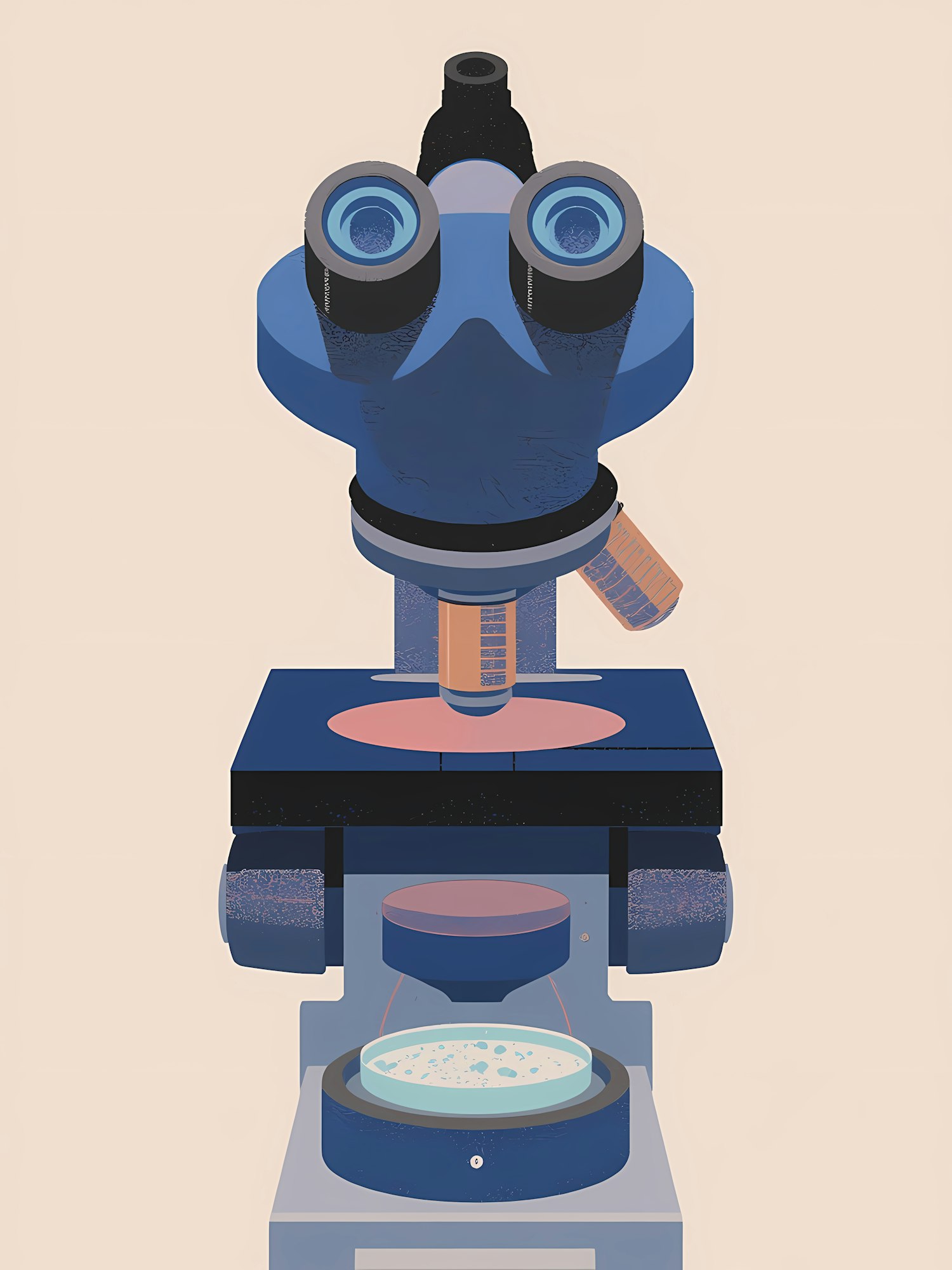 Stylized illustration of a microscope with a petri dish, showcasing a modern design and clean lines against a neutral background.