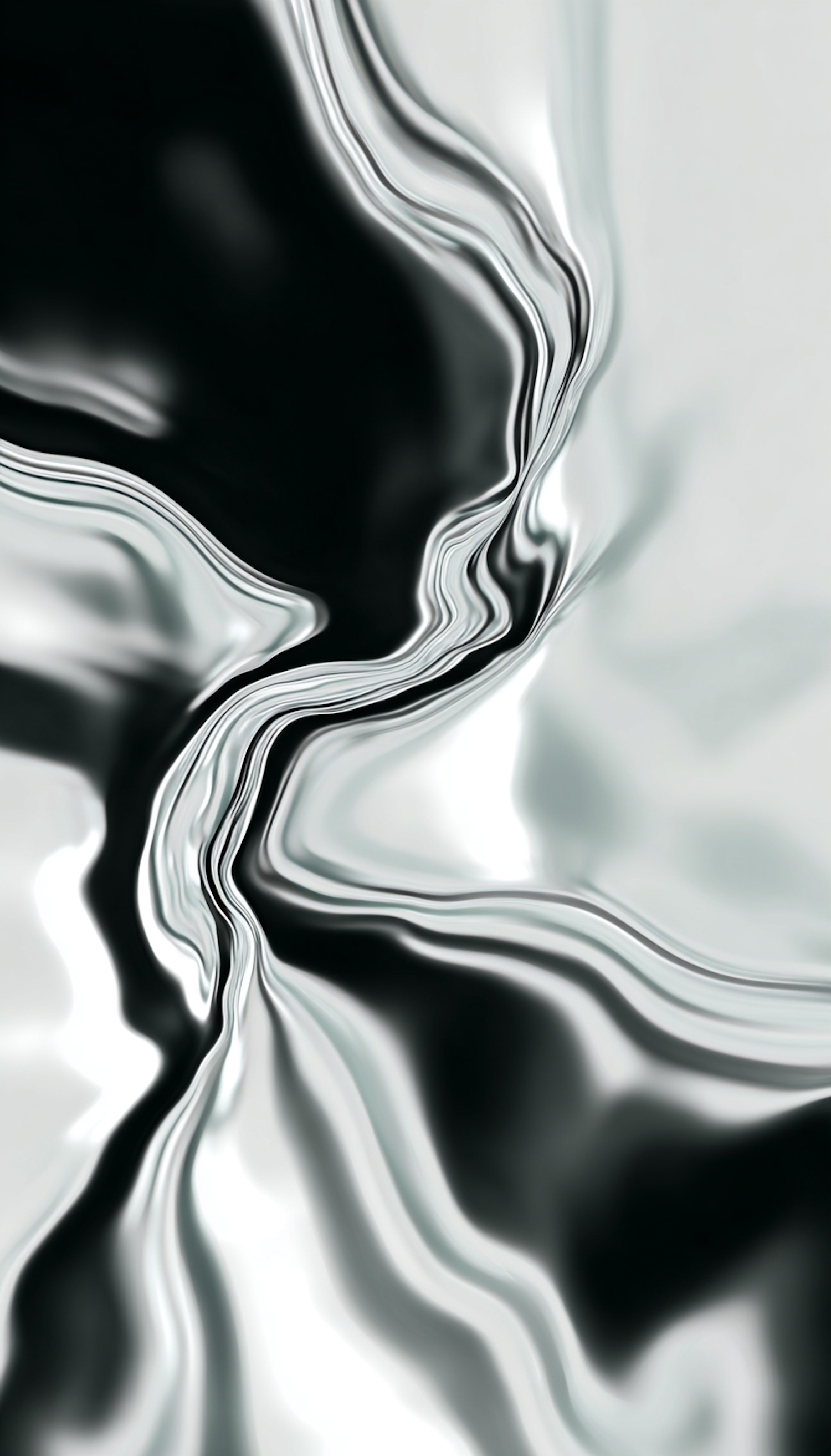 Abstract monochrome composition with wavy, flowing patterns in black and white, resembling marble or liquid textures.