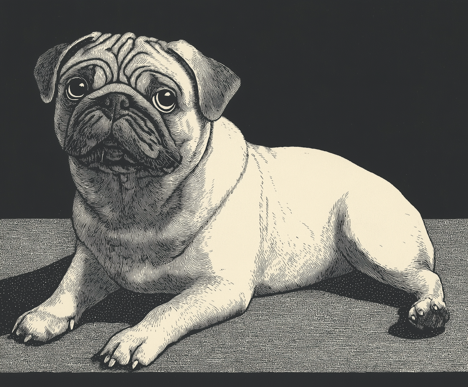 Monochromatic Etched Pug Illustration