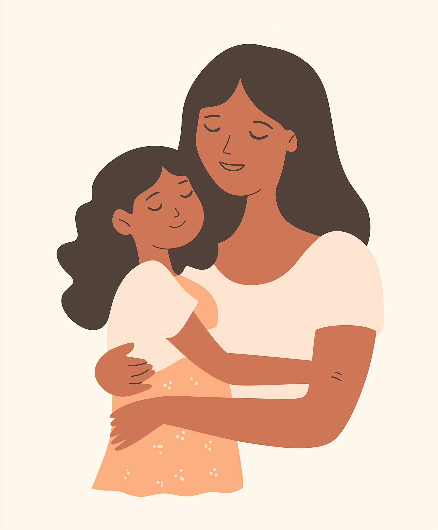 Illustration of a mother and daughter embracing, showcasing warmth and love with simple, clean lines and soft colors.
