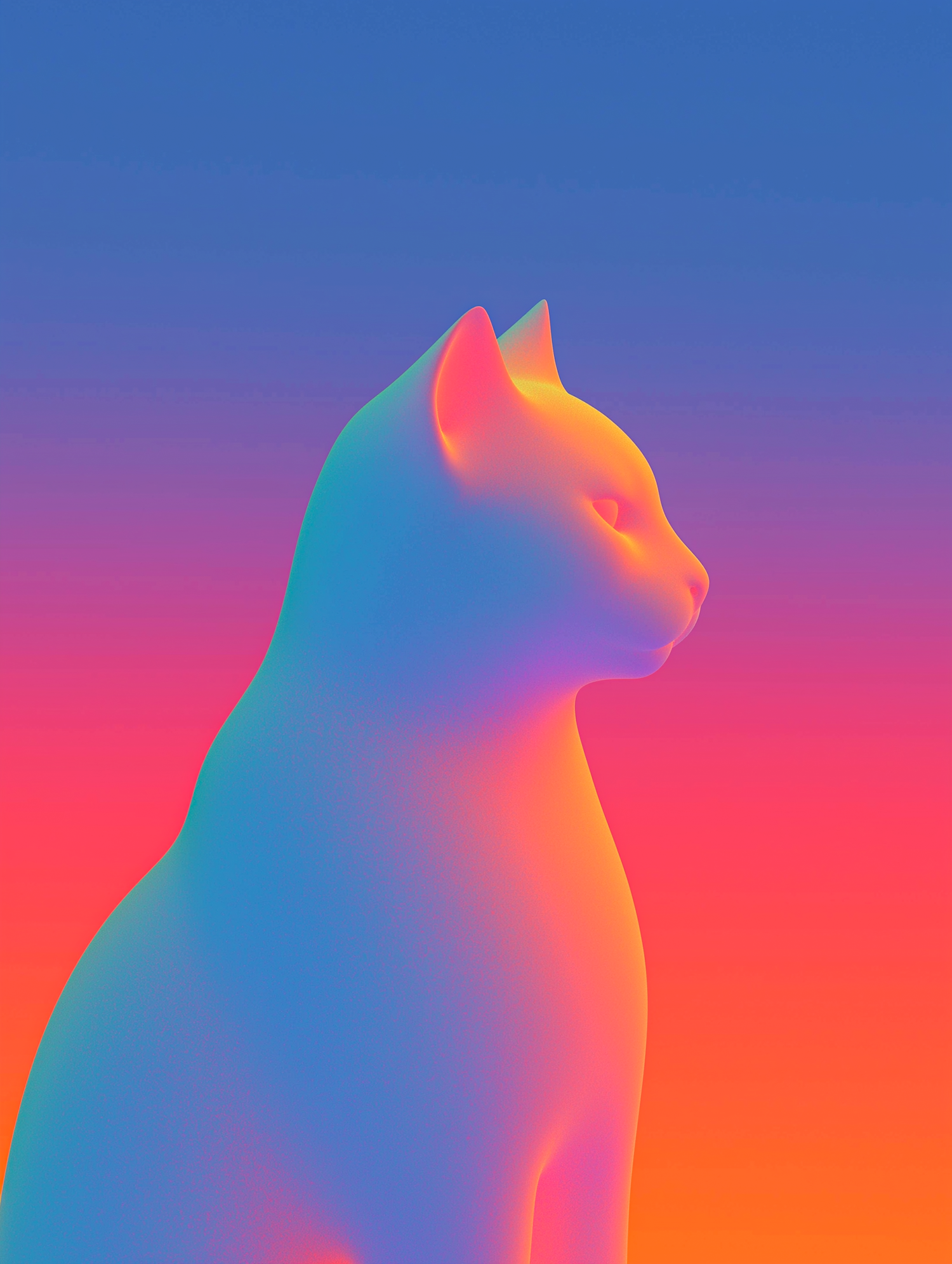 A neon gradient illustration of a cat in profile, blending vibrant blue, pink, and orange hues against a matching gradient background.