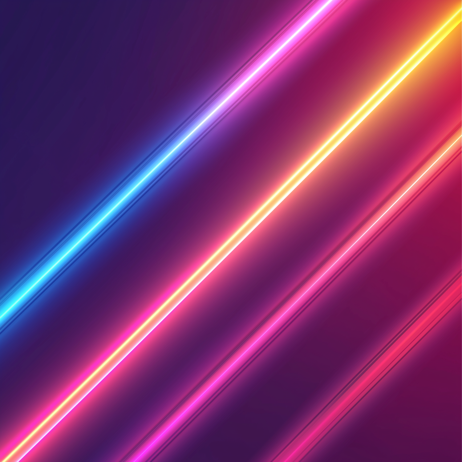 Bright diagonal neon streaks in blue, pink, and orange on a dark purple gradient background, perfect for tech or futuristic designs.