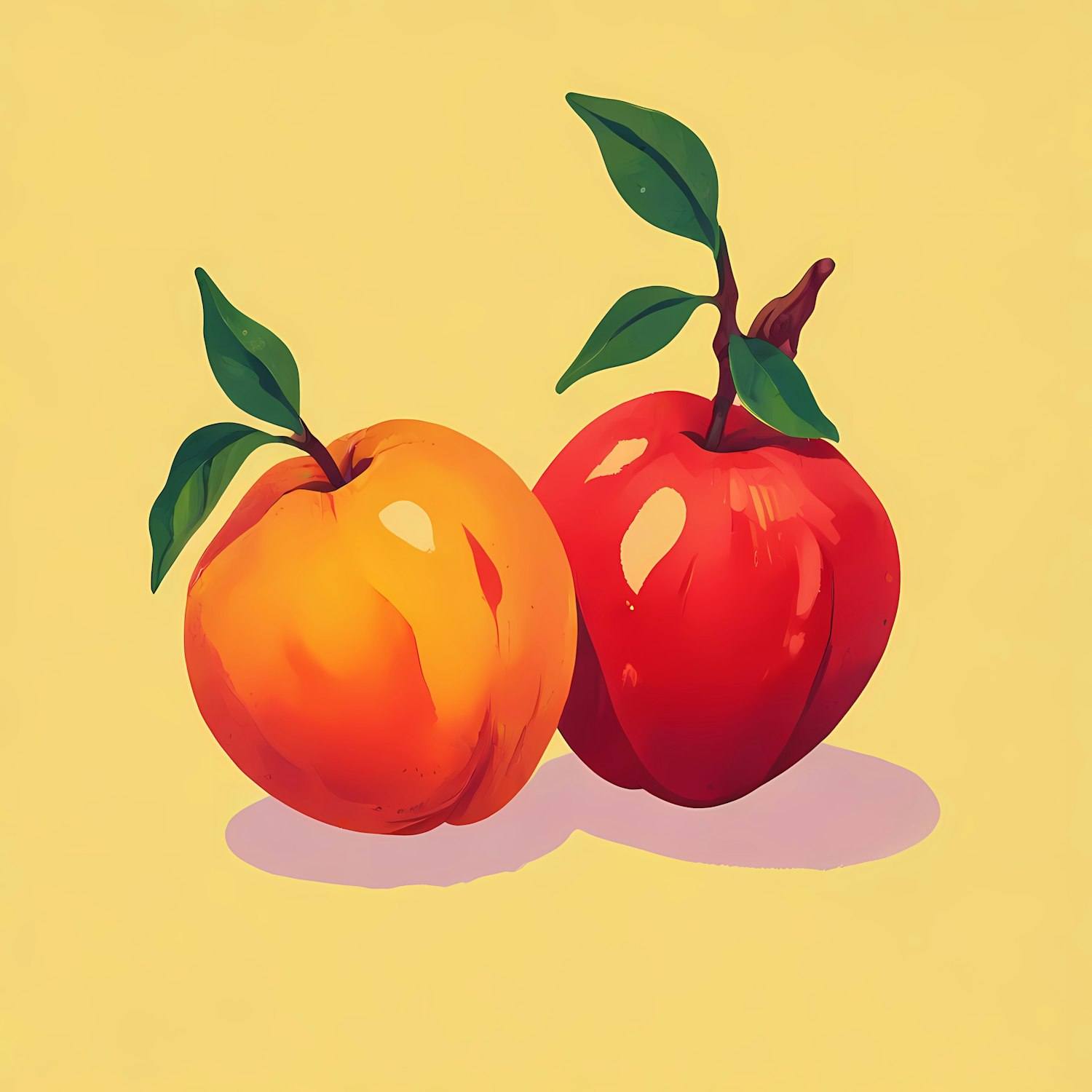 Orange and Red Apple on Yellow Background