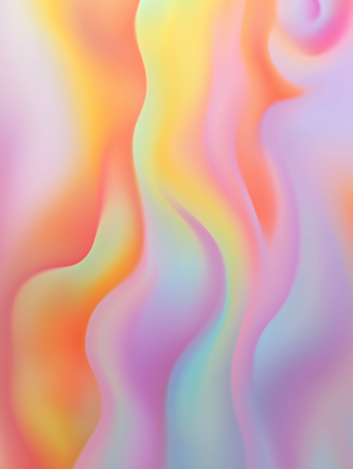 Abstract pastel gradient with flowing waves of pink, orange, yellow, blue, and purple, creating a dreamy and fluid aesthetic.