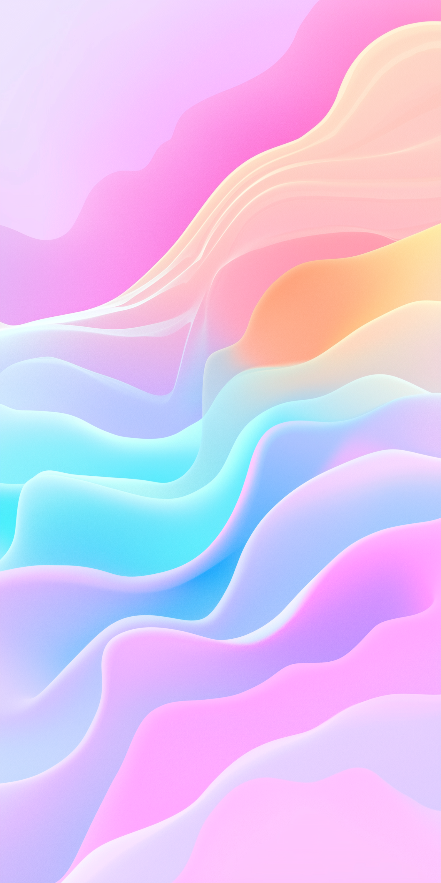 Dreamy pastel waves in pink, blue, and yellow create a calming abstract design with smooth gradients and flowing motion.