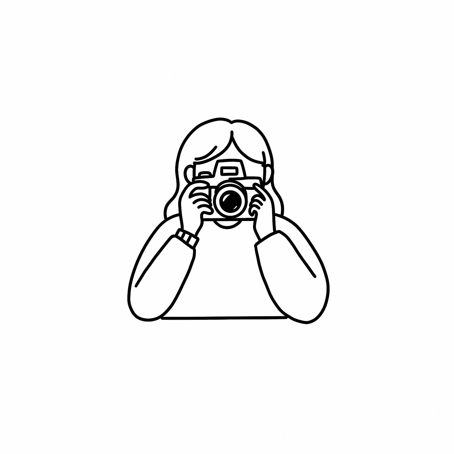 Minimalist line art of a person taking a photo with a camera, perfect for creative or photography-related themes.