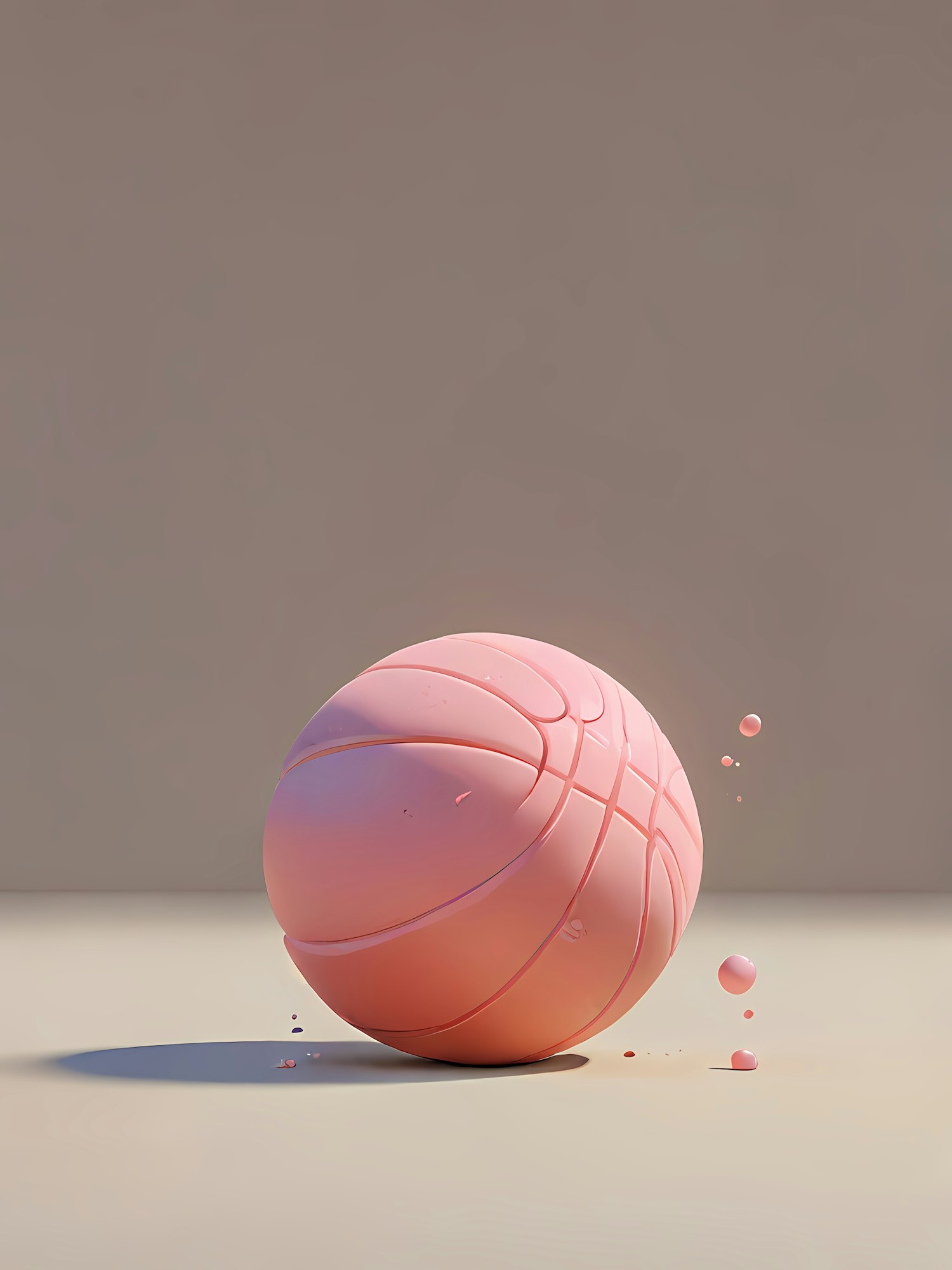 A pink basketball with liquid droplets splashing off it, set against a neutral beige background in a sleek 3D render.