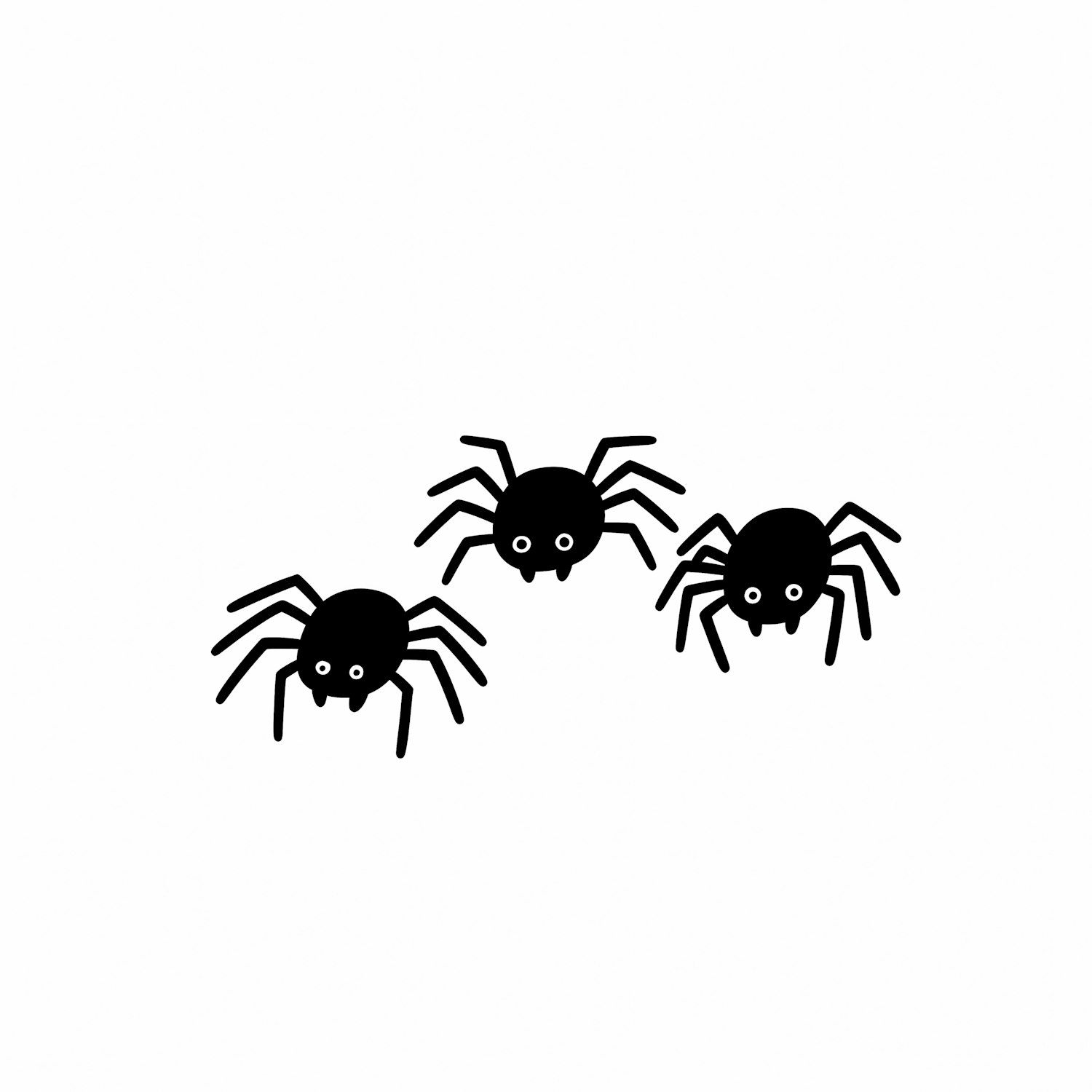 A playful illustration of three cartoon-style black spiders on a white background, featuring simple round bodies and eight legs each.