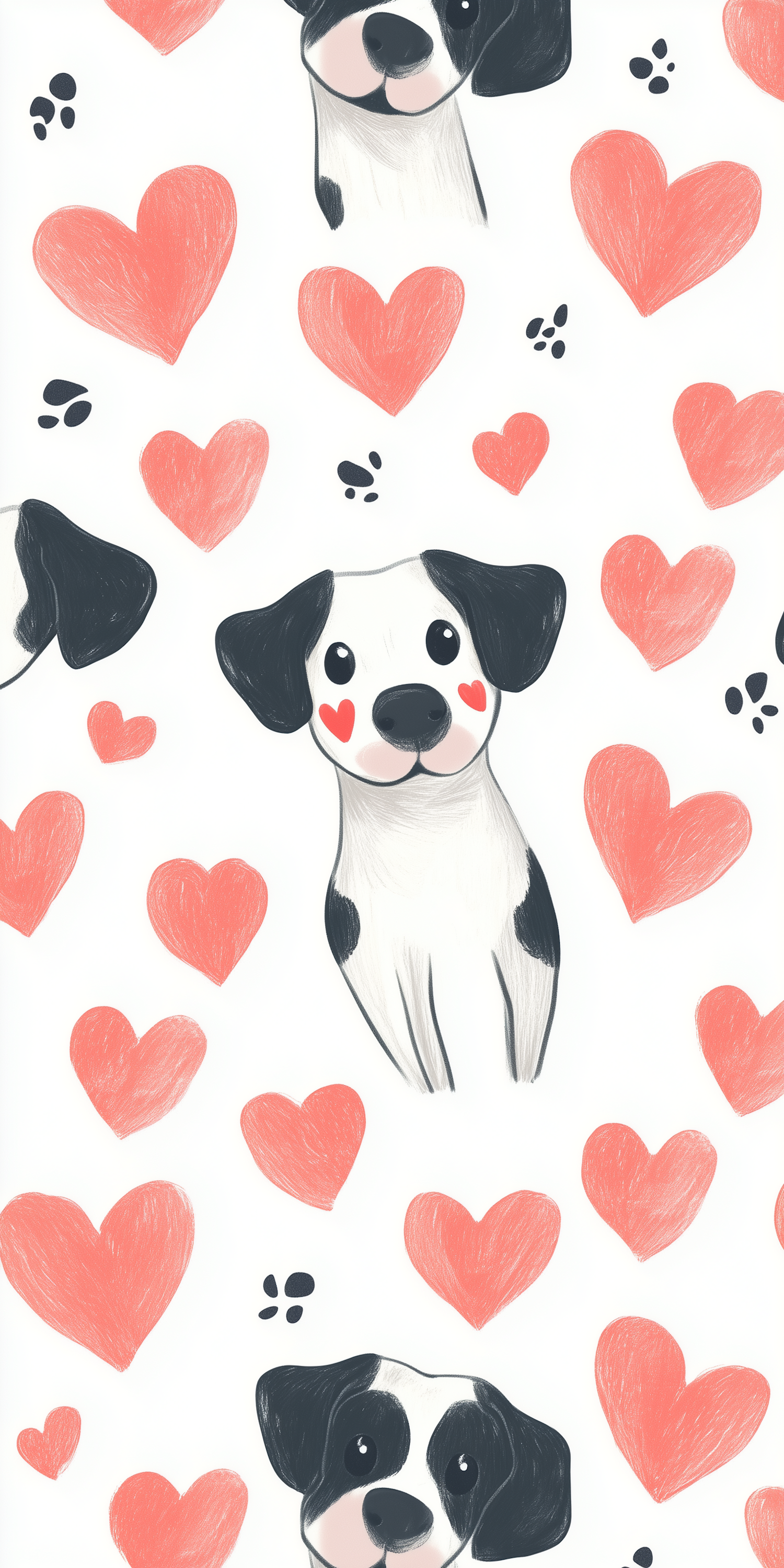 Cute cartoon dogs with pink hearts and paw prints create a playful and loving pattern. Perfect for pet lovers and whimsical designs.