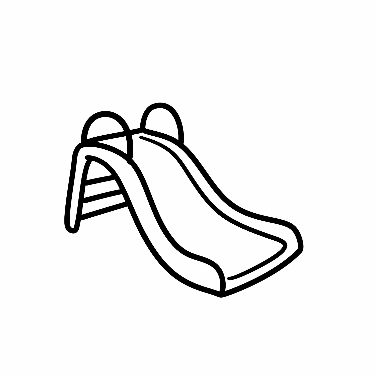 Minimalistic black-and-white line drawing of a playground slide with a curved design and ladder.