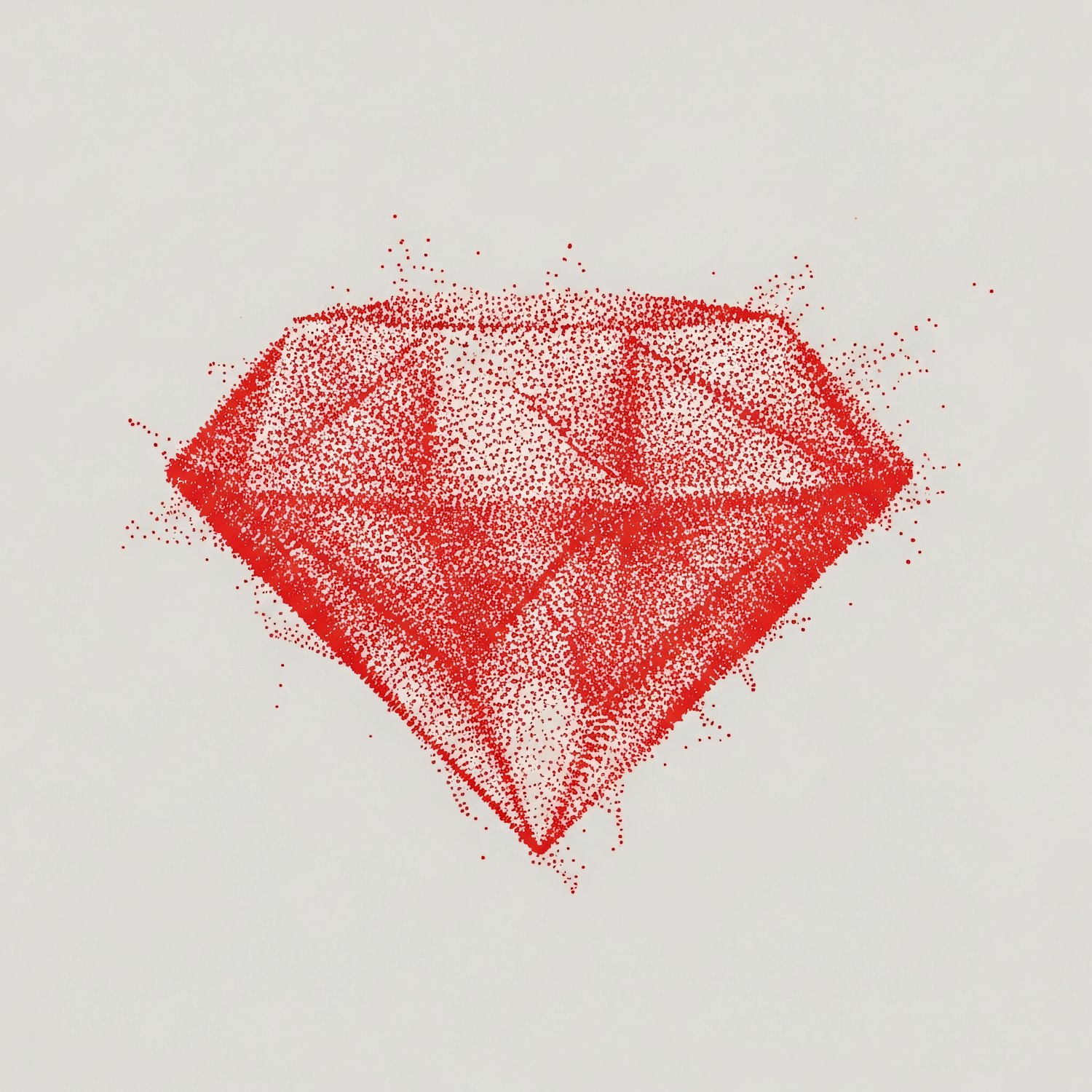 A red diamond illustration made of dots on a light background, showcasing a geometric and minimalistic design with a pointillism effect.