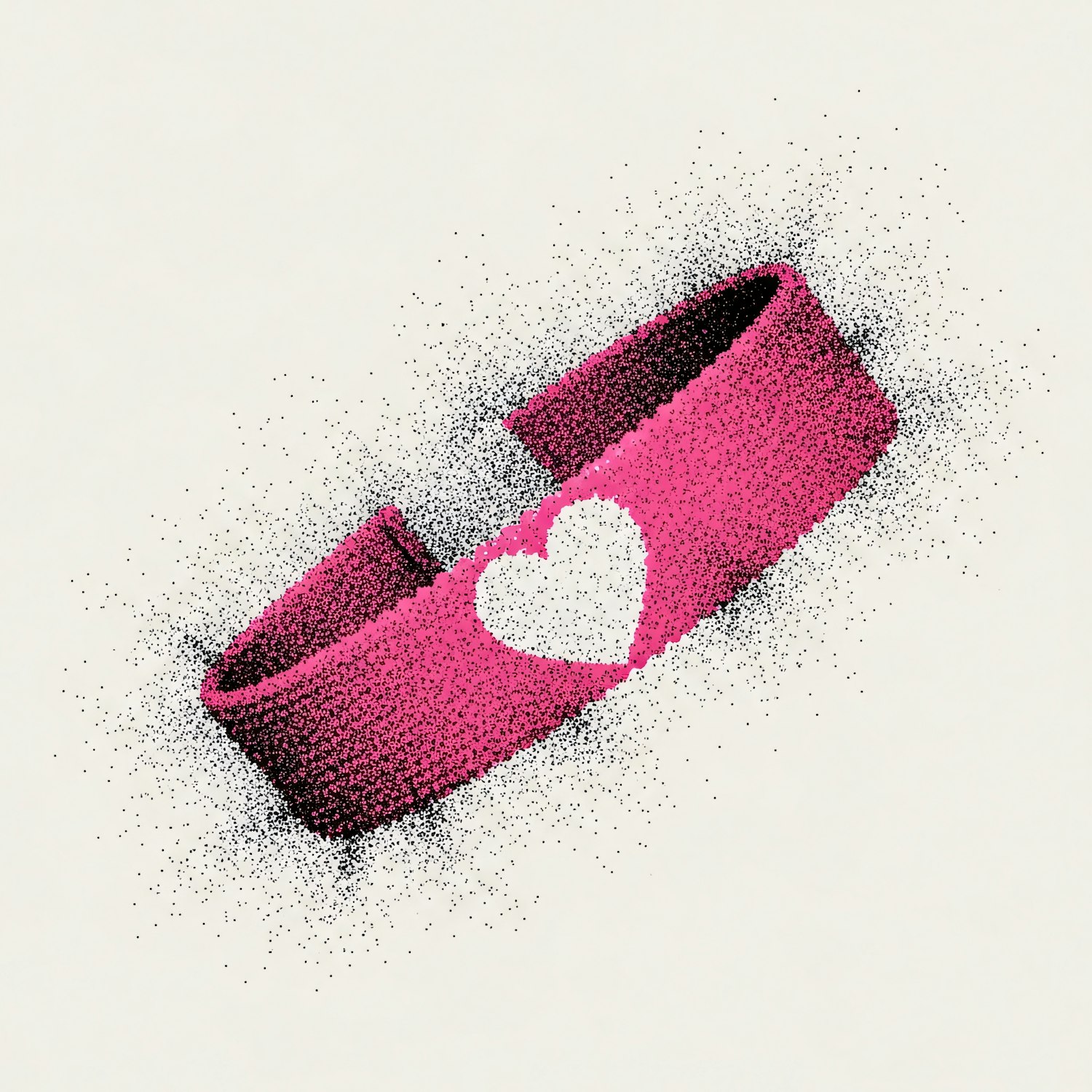 A pink wristband with a white heart design, illustrated in a pointillism style, set against a light background for a vibrant look.