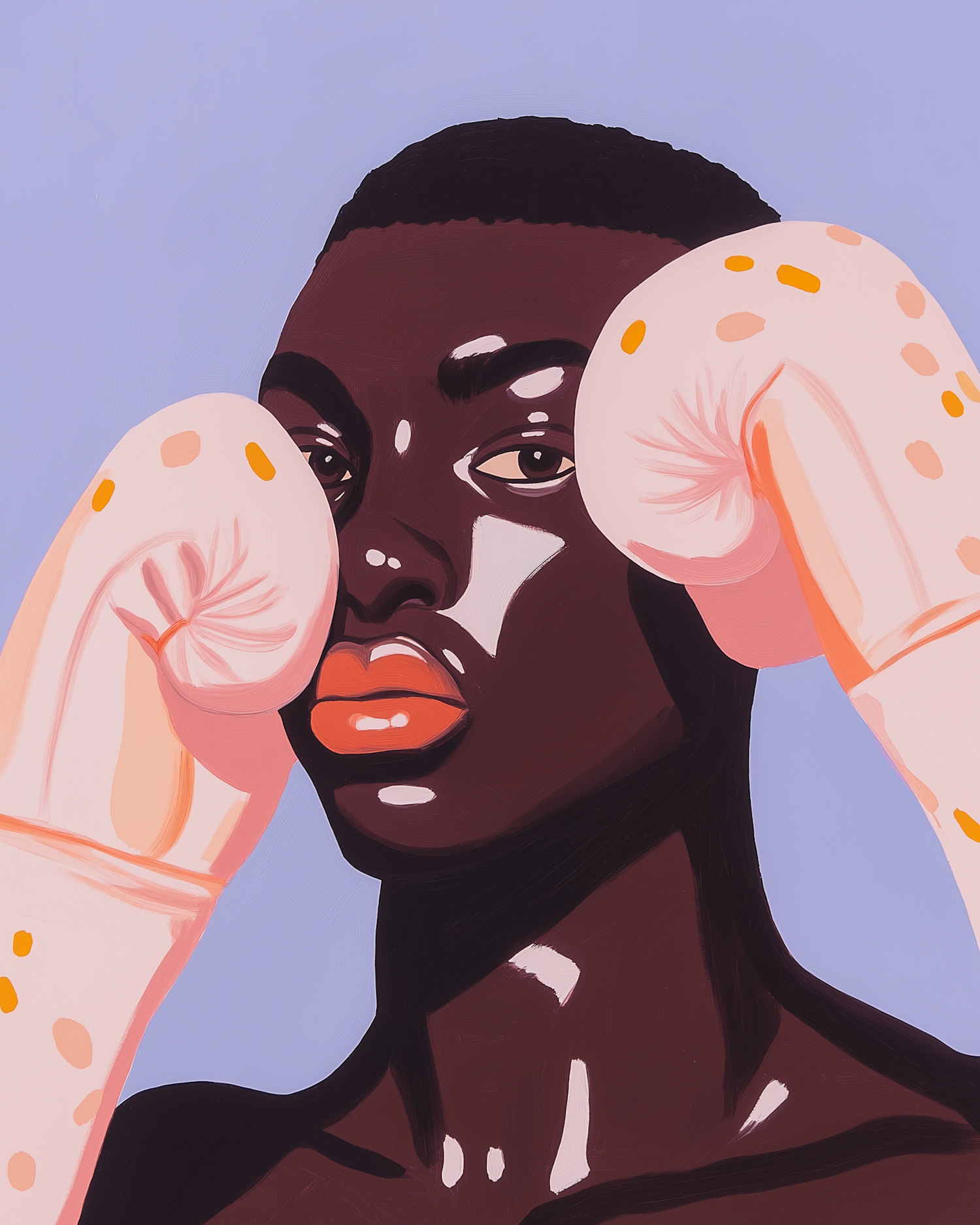 Vibrant illustration of a person with dark skin and patterned arms against a lavender background, face obscured for anonymity.