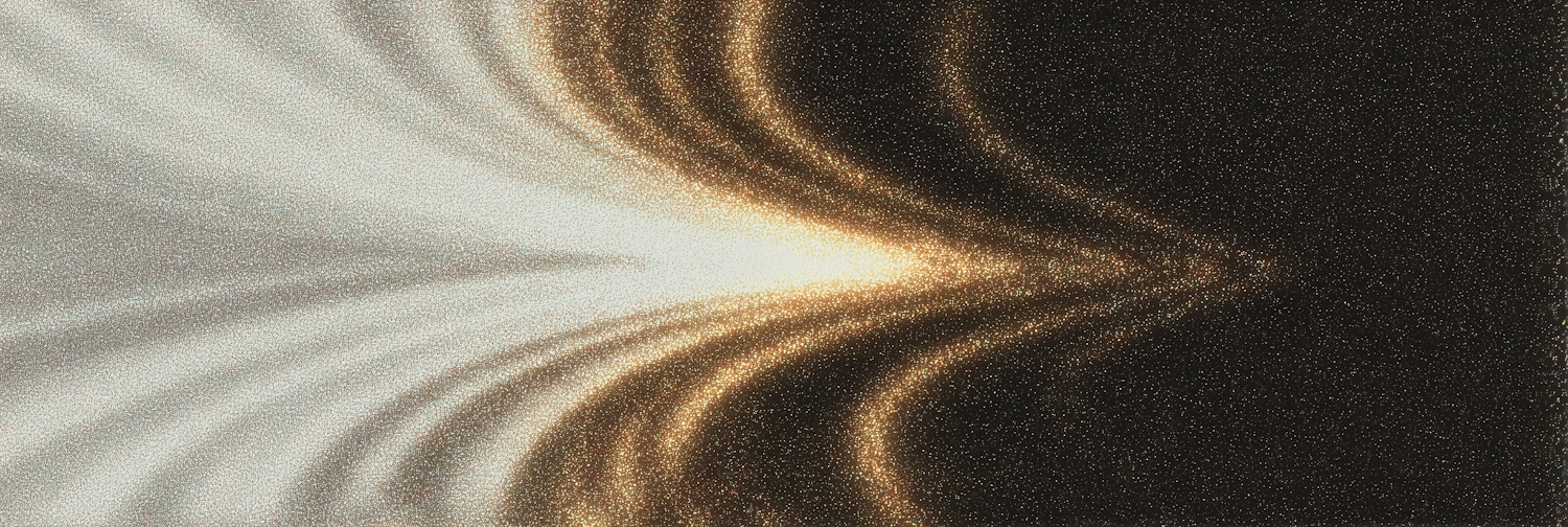 A stunning abstract scene featuring flowing energy patterns in gold and black tones, radiating from a bright focal point.