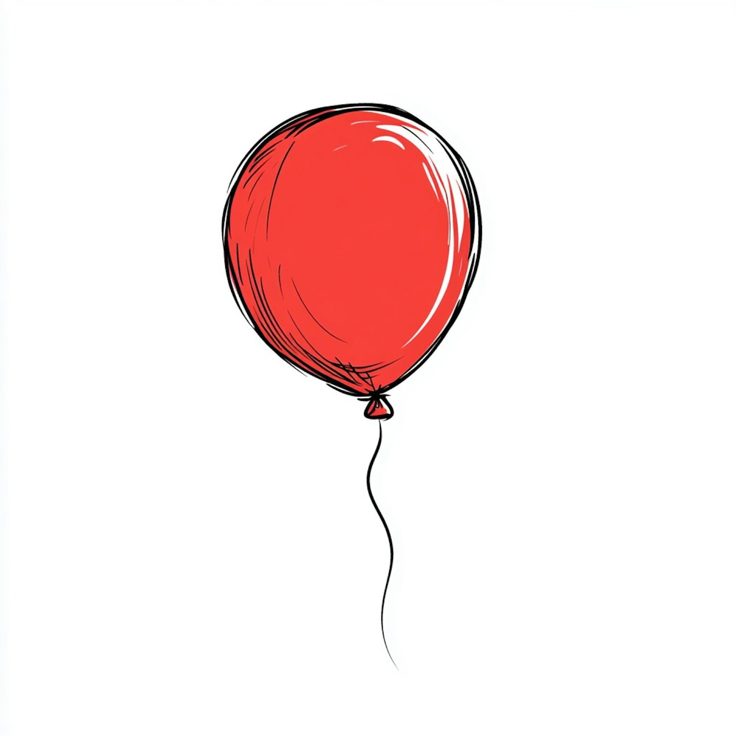 A vibrant red balloon with a thin black string, drawn in a sketchy style on a plain white background. Simple and eye-catching.
