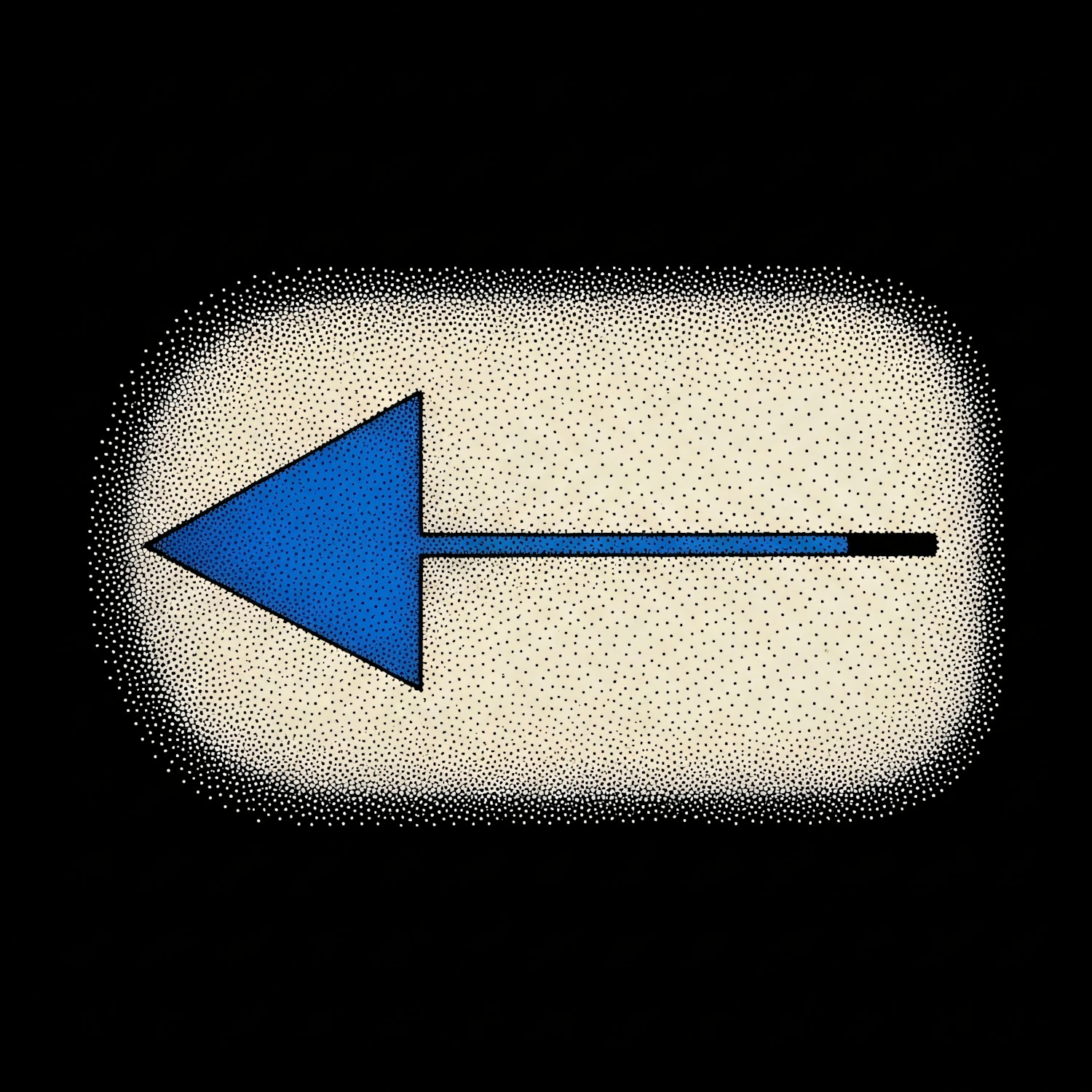 A retro-styled blue arrow pointing left on a halftone beige background, perfect for vintage or comic-inspired designs.
