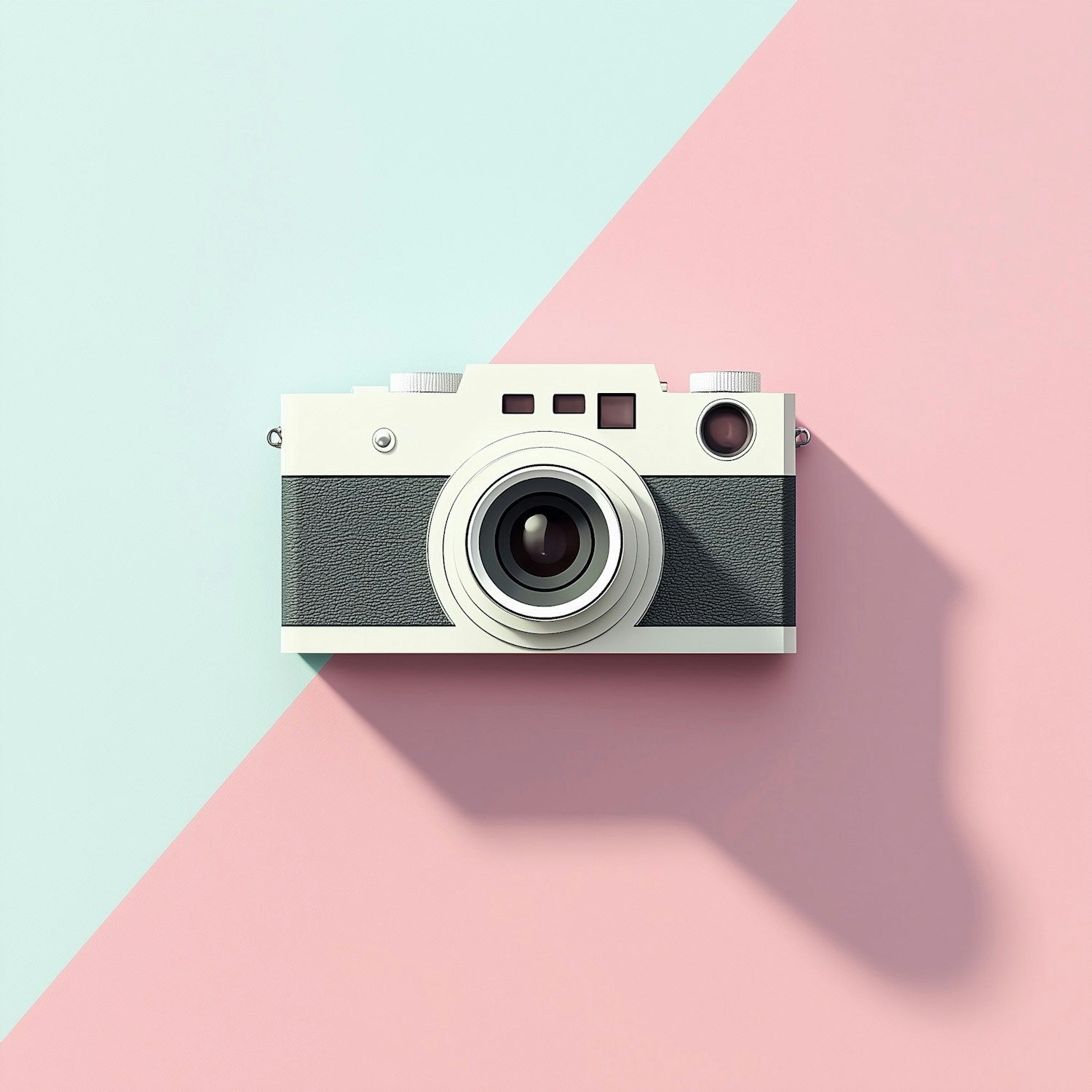Retro-style camera on a pastel mint and pink background, perfect for vintage photography enthusiasts or minimalist design lovers.
