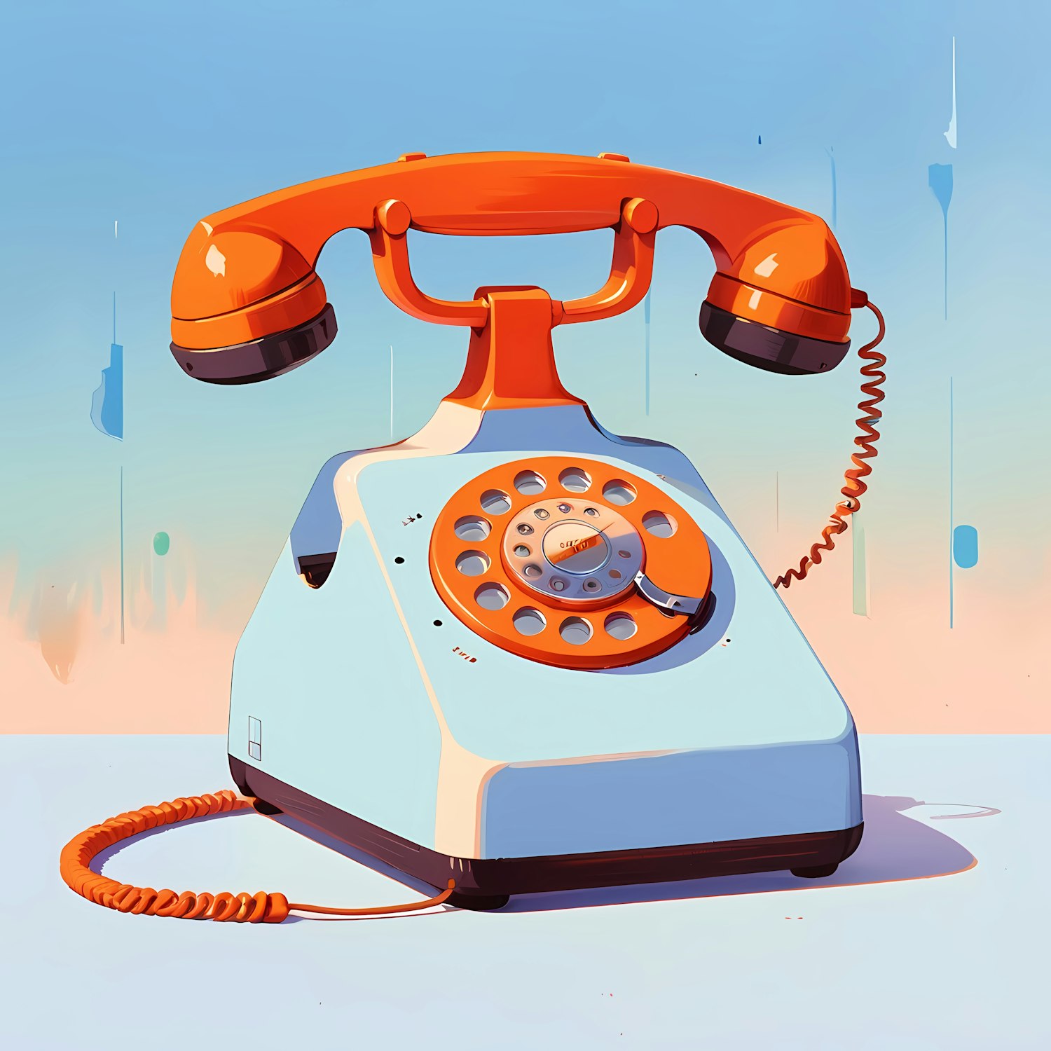 Stylized retro rotary phone in orange and blue with a gradient background. Perfect mix of vintage charm and modern design.