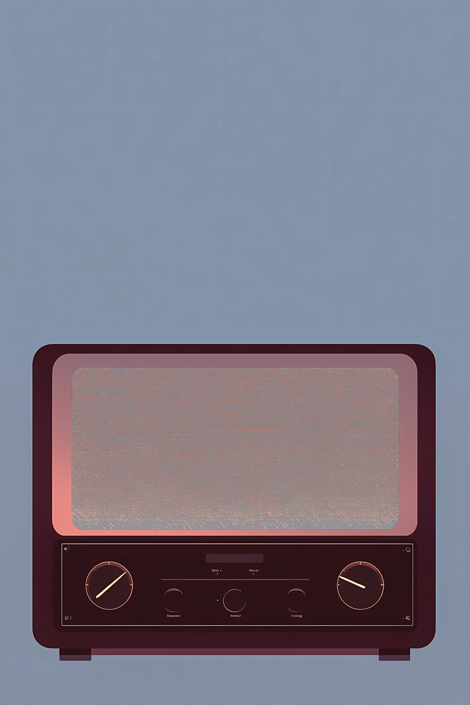 Stylized illustration of a vintage television with a maroon frame and static screen, set against a plain blue background.