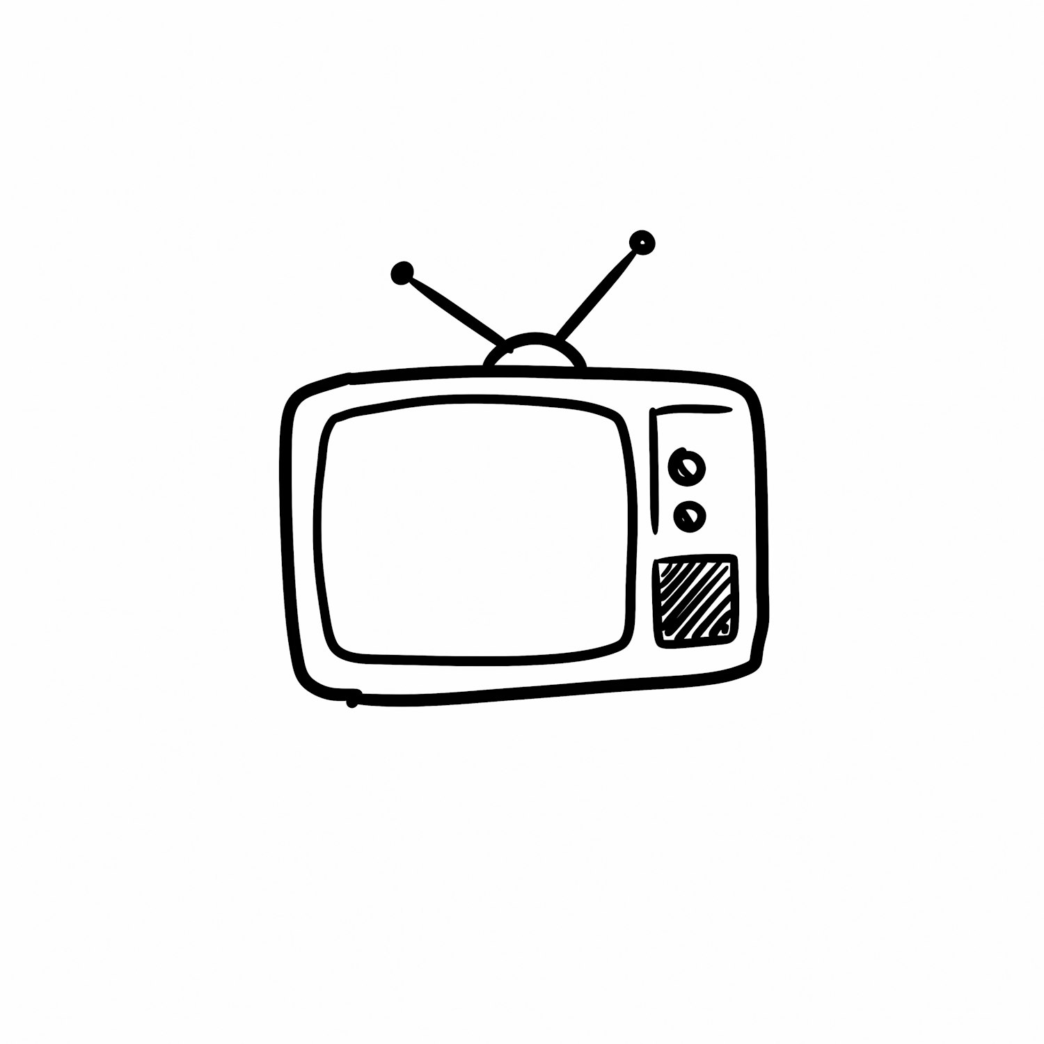 Minimalist black-and-white line art of a retro TV with antennas and side controls, perfect for vintage or tech-themed designs.
