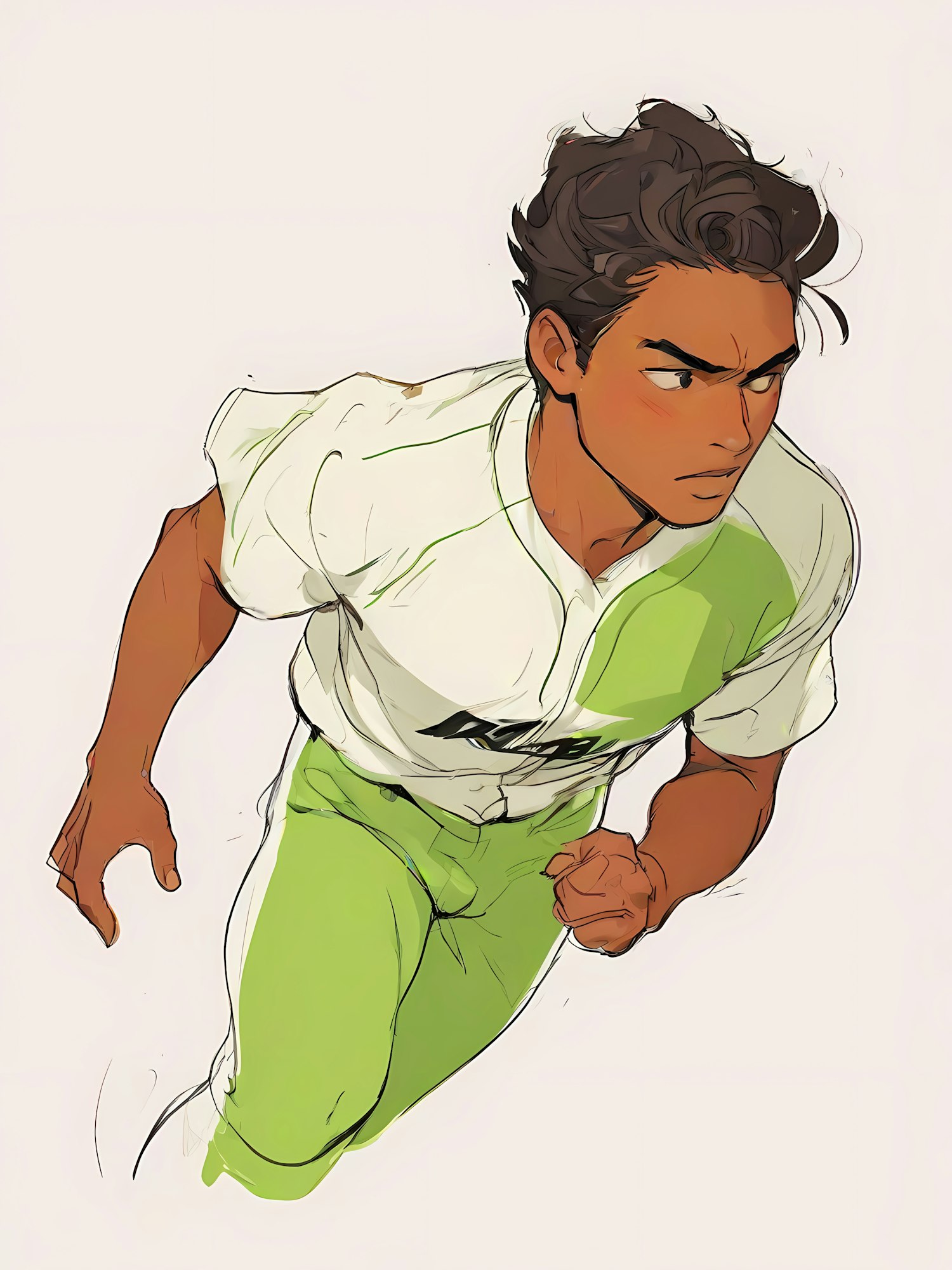Illustration of a determined athlete running in a white and lime green sports uniform, showcasing dynamic motion and focus.