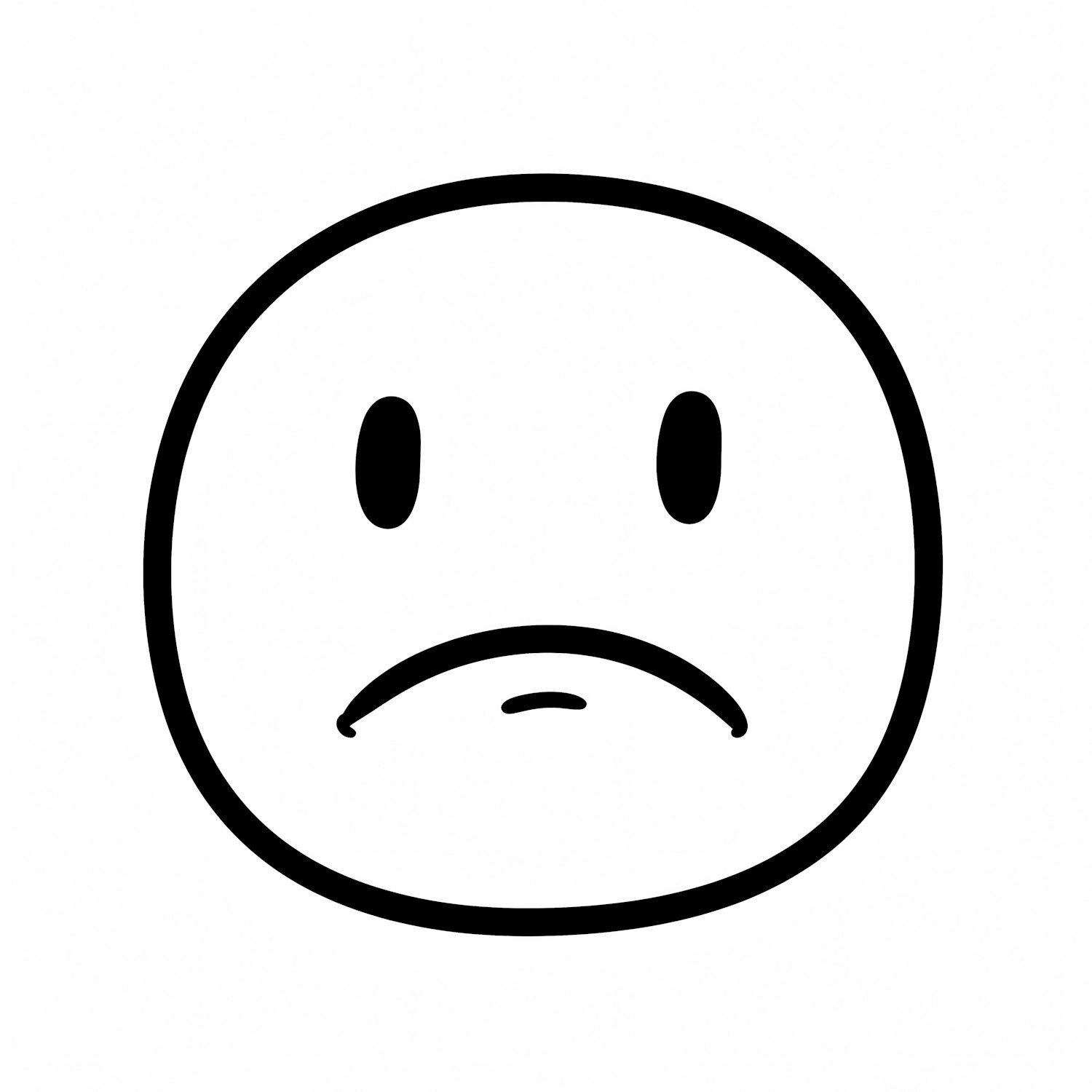 Minimalist black-and-white sad face emoticon with clean lines and a simple design, expressing sadness or disappointment.