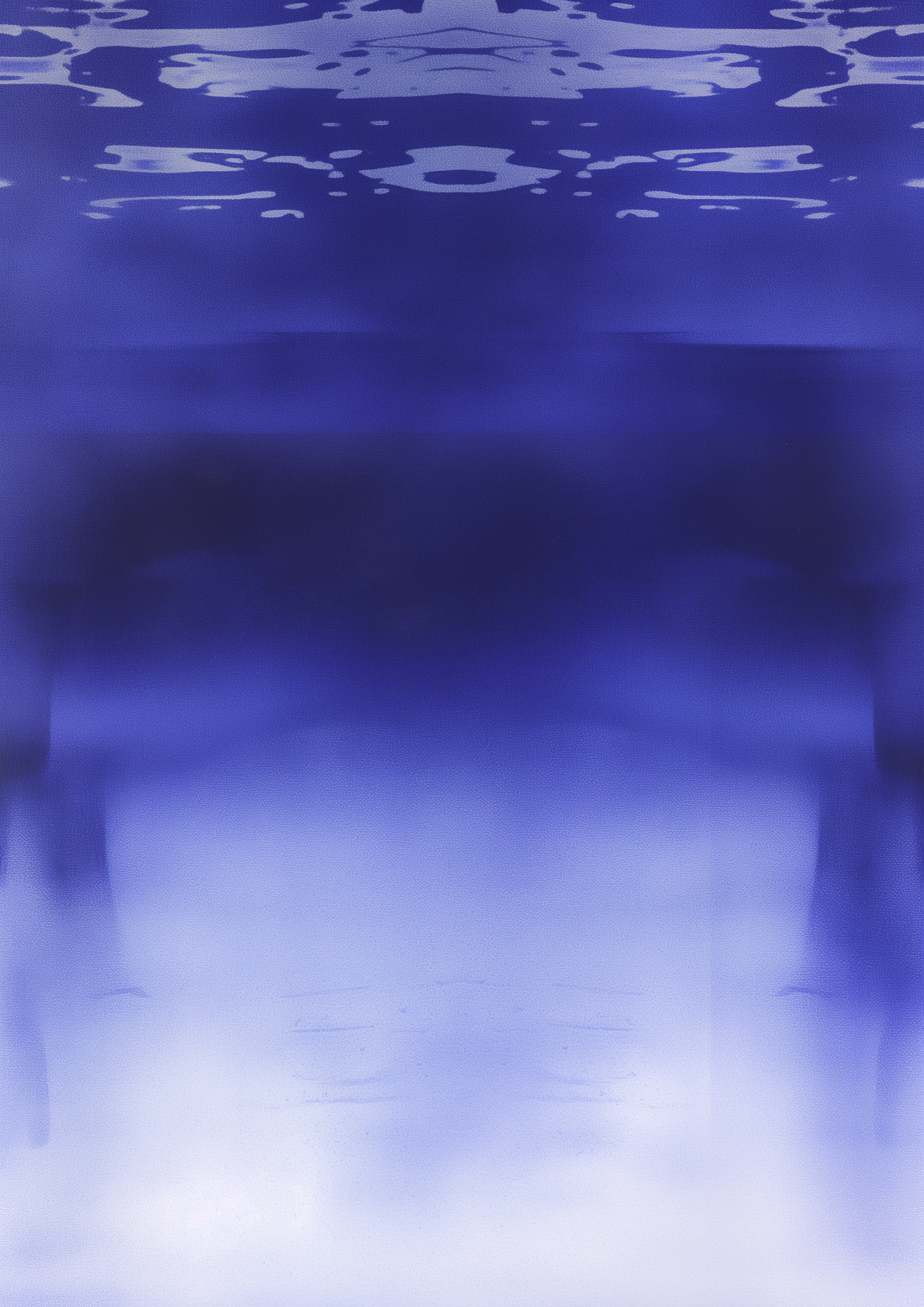 Abstract blue artwork with water-like ripples and gradients, evoking a serene underwater atmosphere with soft, blurred textures.