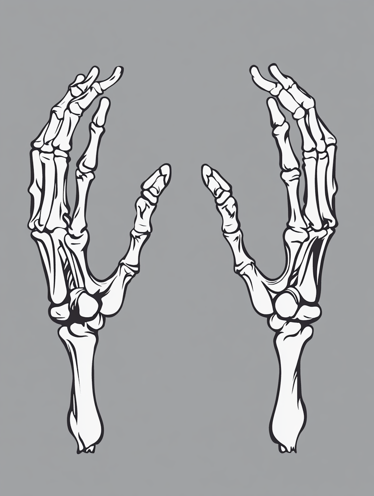 Detailed illustration of two skeletal hands on a gray background, showcasing intricate bone structure and anatomy.