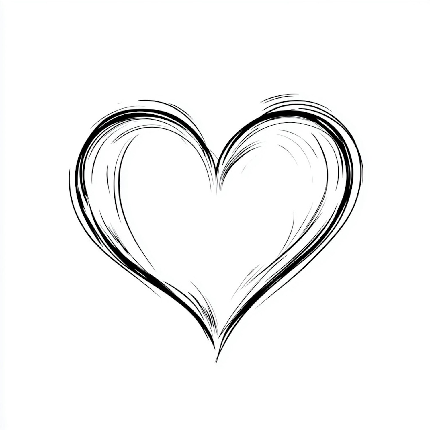 Minimalist black and white heart illustration with sketch-like strokes, perfect for modern designs or artistic projects.