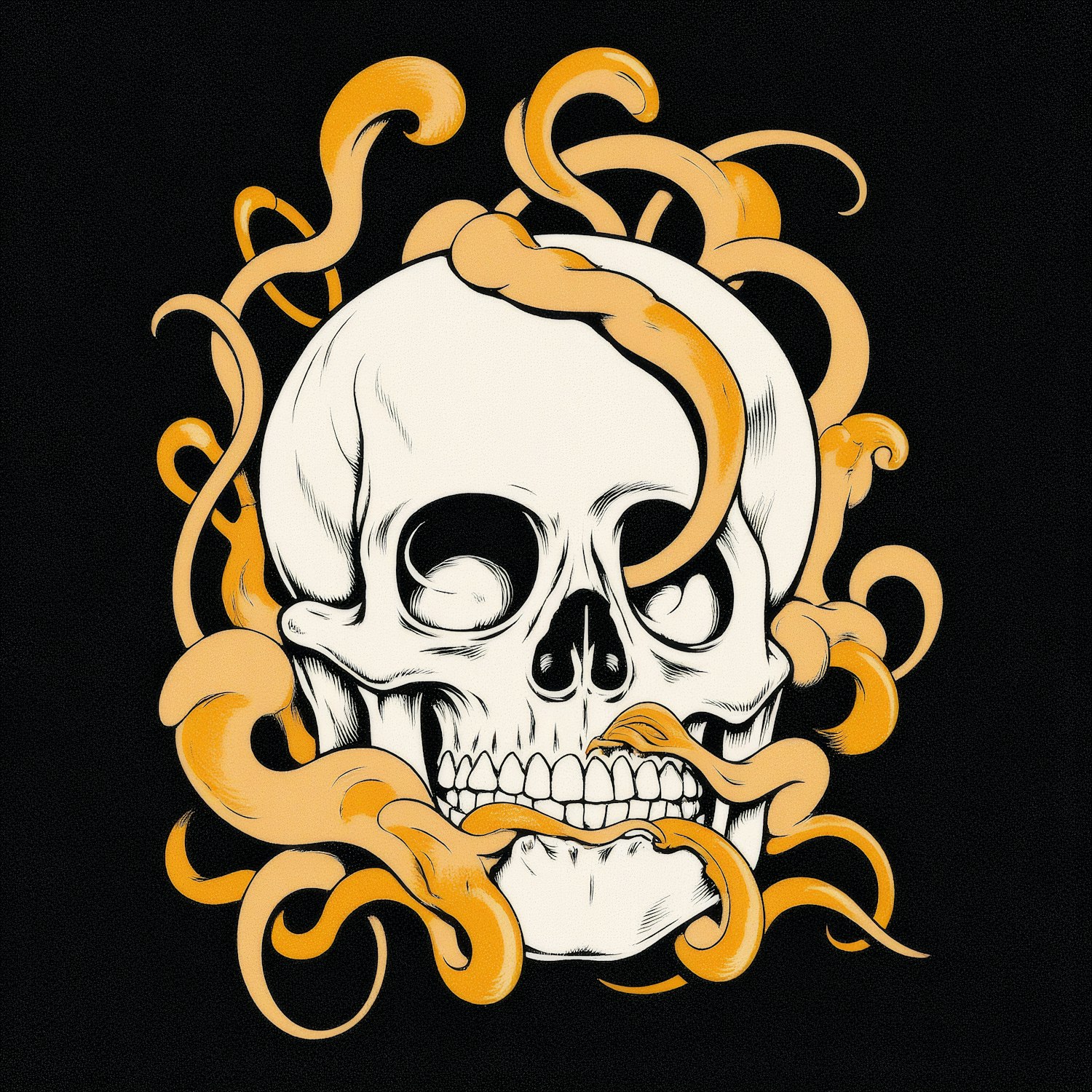 Skull with Orange Tendrils