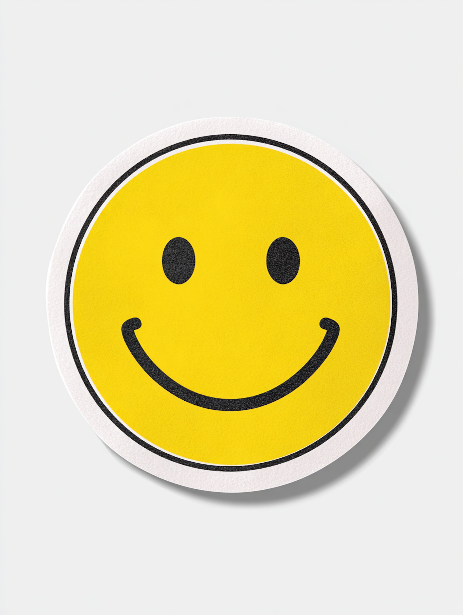 A classic yellow smiley face with a black outline and features, set on a clean white background.
