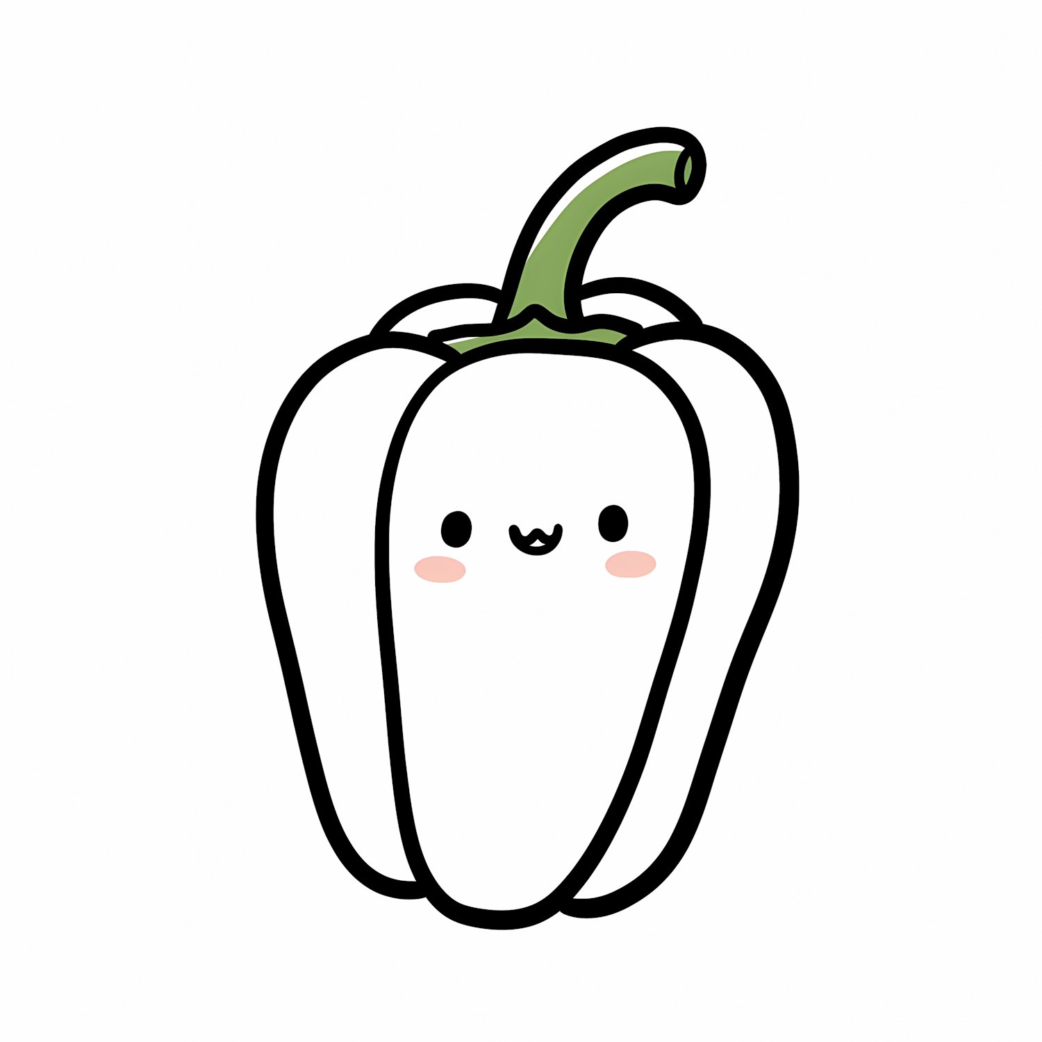 Adorable cartoon white bell pepper with a smiling face and green stem, perfect for fun and playful designs.