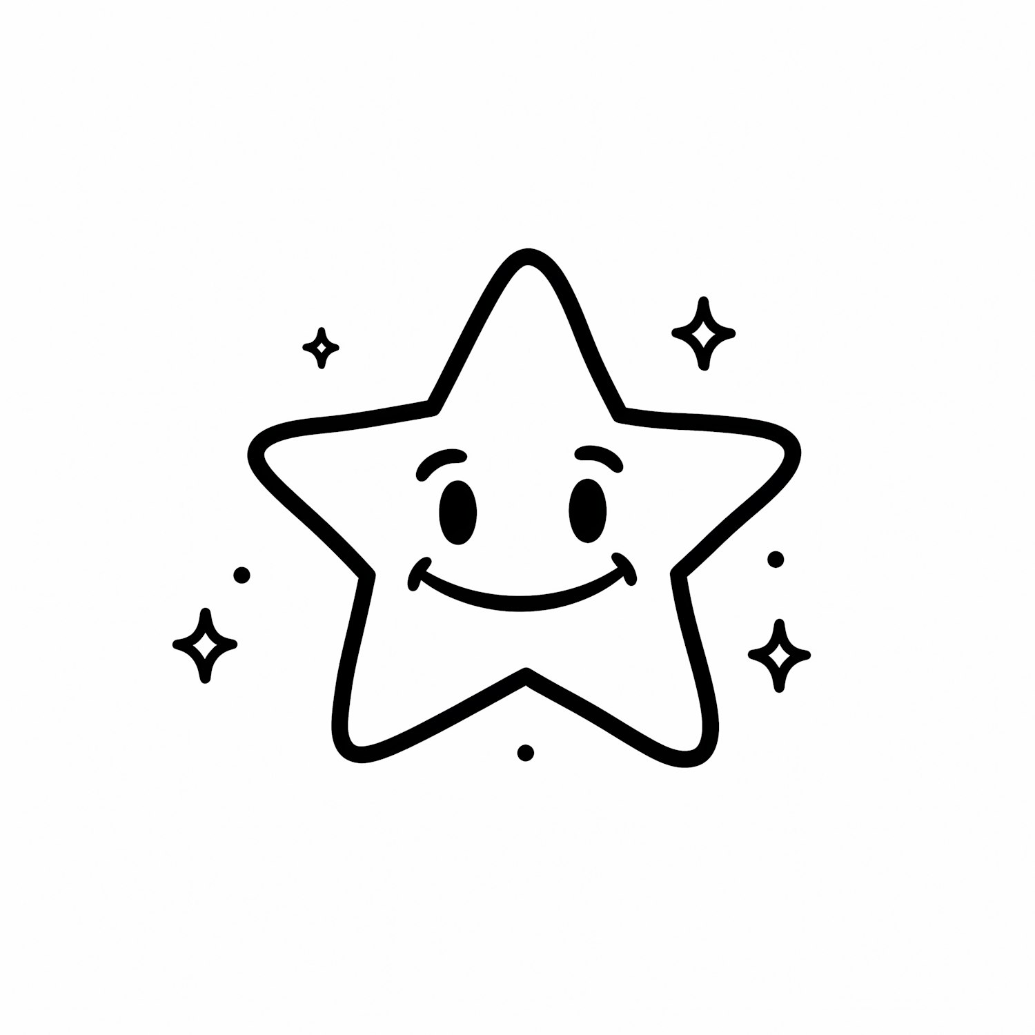 A cute smiling star illustration surrounded by sparkles, perfect for kids' designs or cheerful decorations.