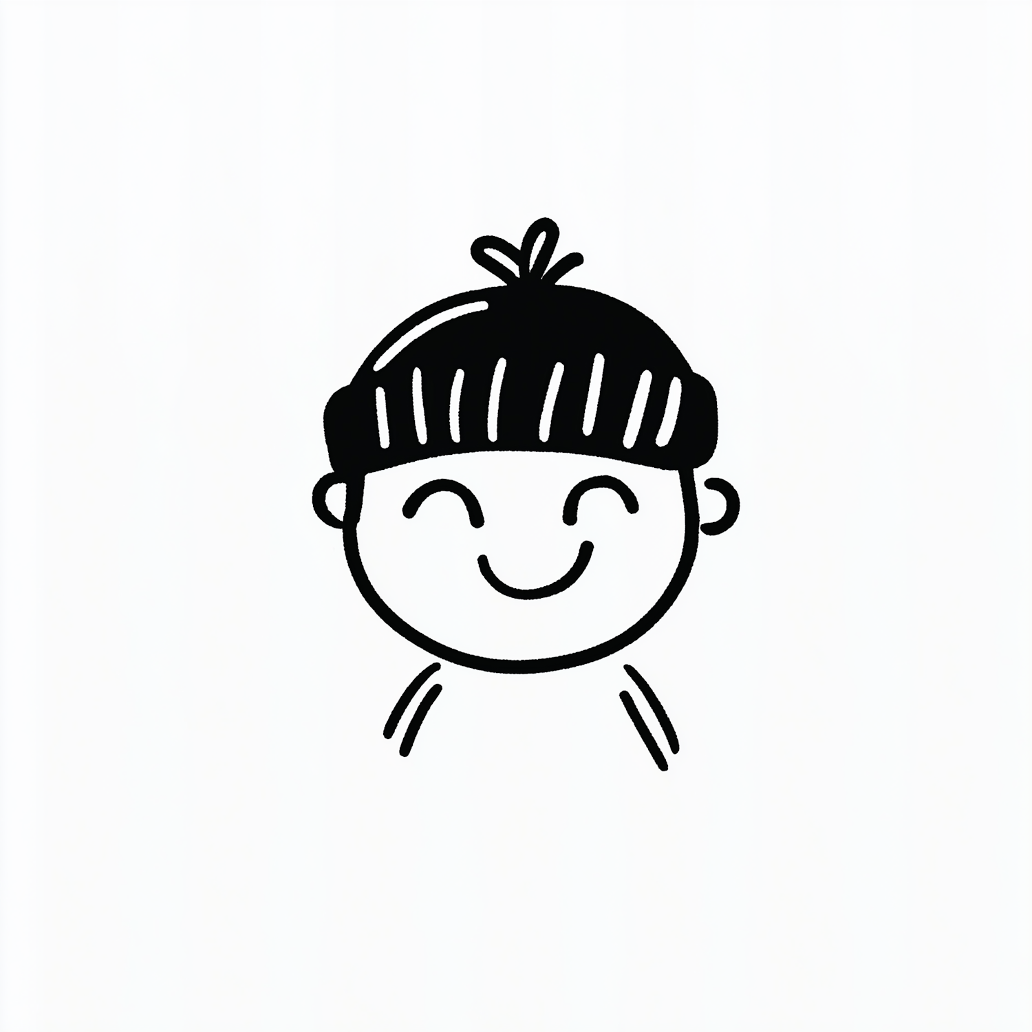 Minimalist black-and-white line art of a smiling child wearing a textured beanie, radiating joy and simplicity.